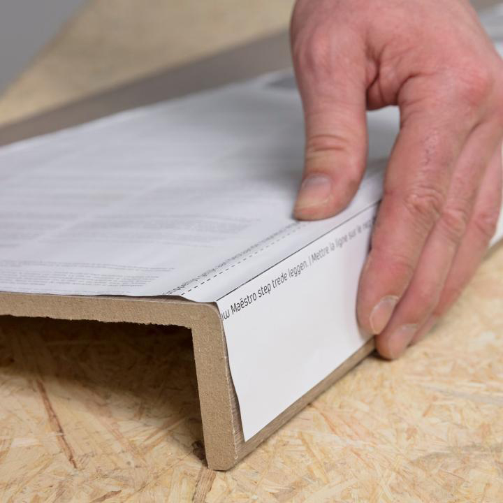 Usa il seghetto Elettrico per Tagliare i Gradini Maestro Steps (e altri eventuali Accessori) delle Dimensioni e della Forma dei tuoi (in dotazione avrai un foglio apposito per prendere la sagoma precisa). Stendi la colla sulla tua Scala e appoggia il Rivestimento per Scale Maestro Steps partendo dal basso tenendo premuto qualche secondo perchè la colla faccia il suo effetto.