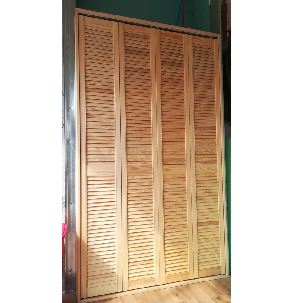 Ante per Armadio a Muro a Persiana in Legno Naturale con apertura a Libro, perfetta come Anta per nicchia muro o Porta per la divisione dei tuoi Spazi. La persiana permette il passaggio e il ricambio dell’aria, utile del caso di utilizzo dell’anta come Ripostiglio, Scarpiera o comoda Cabina Armadio.