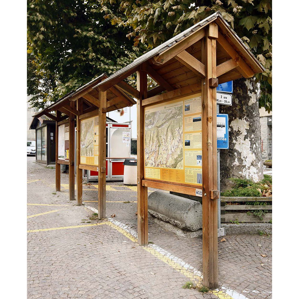 Per garantire una migliore resistenza agli agenti atmosferici e mantenere a lungo inalterate le sue caratteristiche strutturali ed estetiche, la bacheca arredo urbano viene realizzata interamente in Pino Impregnato in Autoclave.