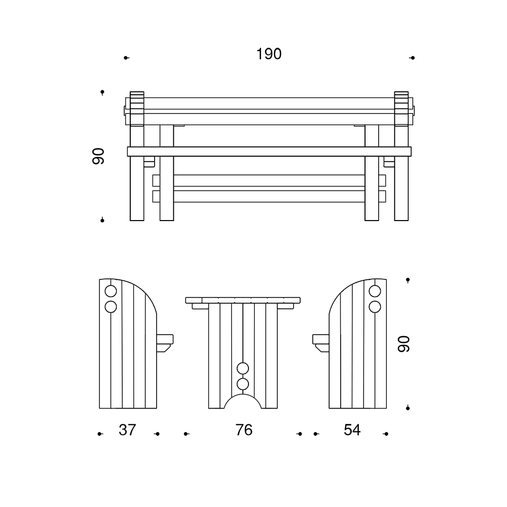 Sia il tavolo, sia le panche sono realizzate in Legno di Pino Autoclavato.