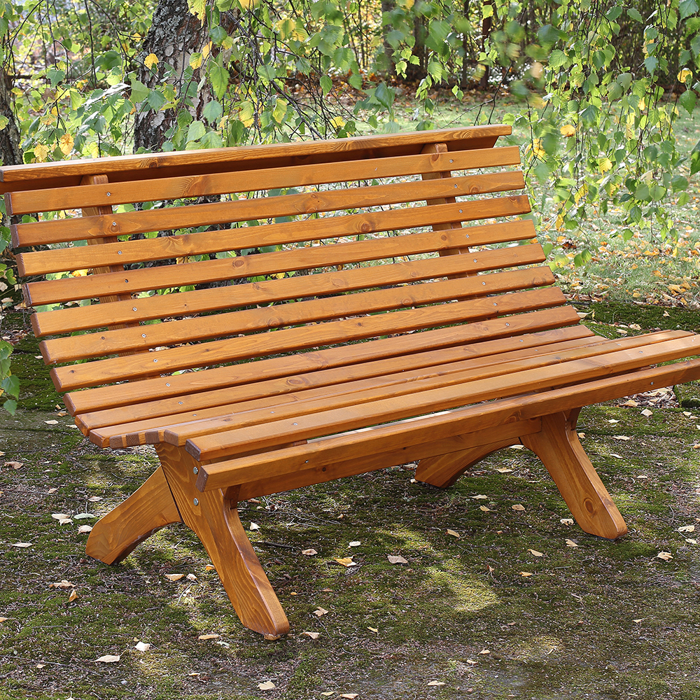 La panca in legno da esterno è realizzata in legno verniciata miele, pronta per l’uso esterno senza bisogno di trattamenti.