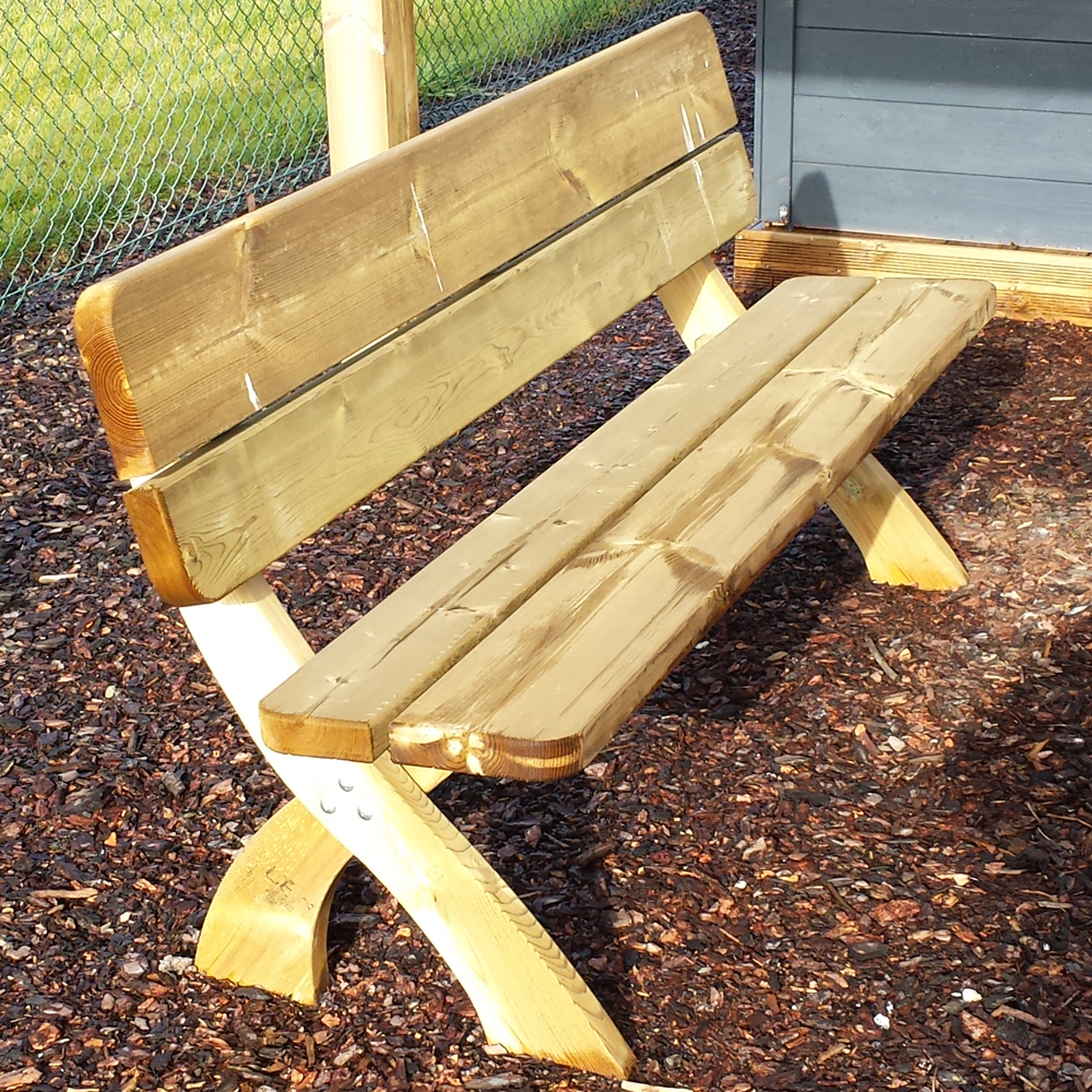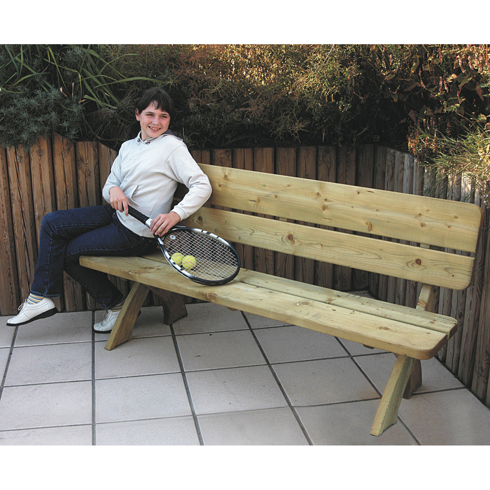 Panca in legno di pino impregnato in autoclave classe 3, pronta per uso esterno senza necessità di trattamento.