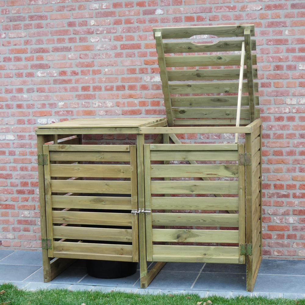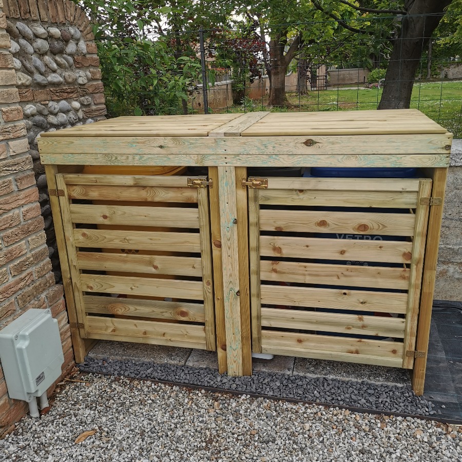 Porta bidoni da Esterno Doppio in Legno di Pino Impregnato in Autoclave, pronto per l’uso esterno senza bisogno di manutenzione nel tempo.