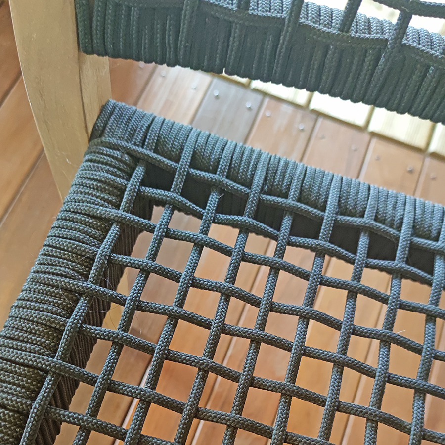 Lo schienale e la seduta sono realizzati con fibre naturali intrecciate per uno stile unico che non rinuncia alla resistenza.