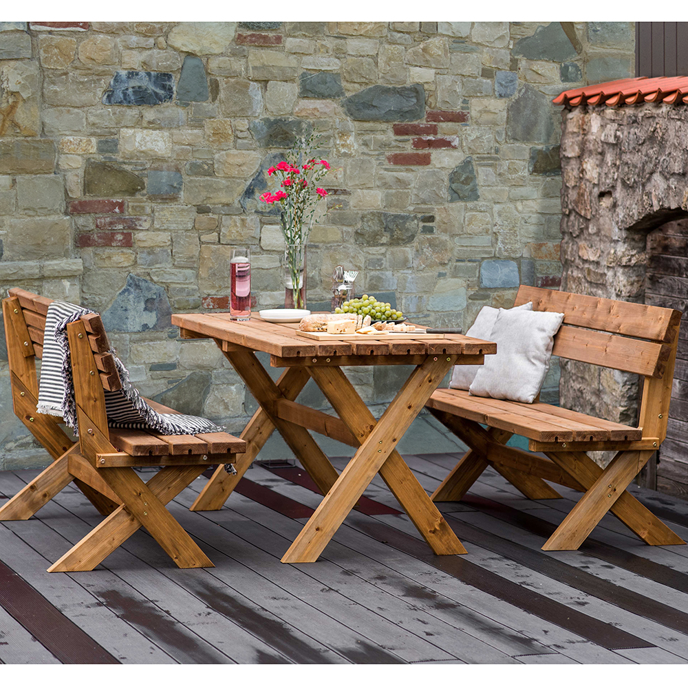 Set tavolo e panche da giardino in legno, per rilassarti e trascorrere del tempo all’aria aperta in compagnia delle persone che ami.