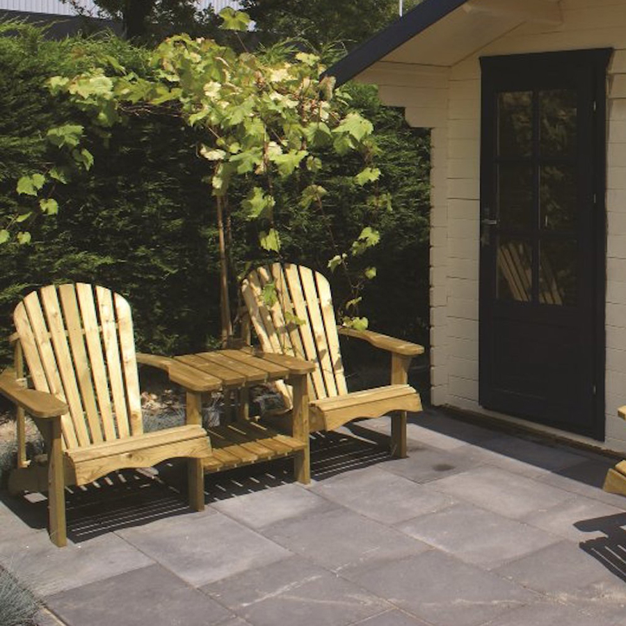 Il set tavolo e sedie da giardino è realizzato in legno di pino trattato a pressione, per garantire anni di utilizzo all’aria aperta.