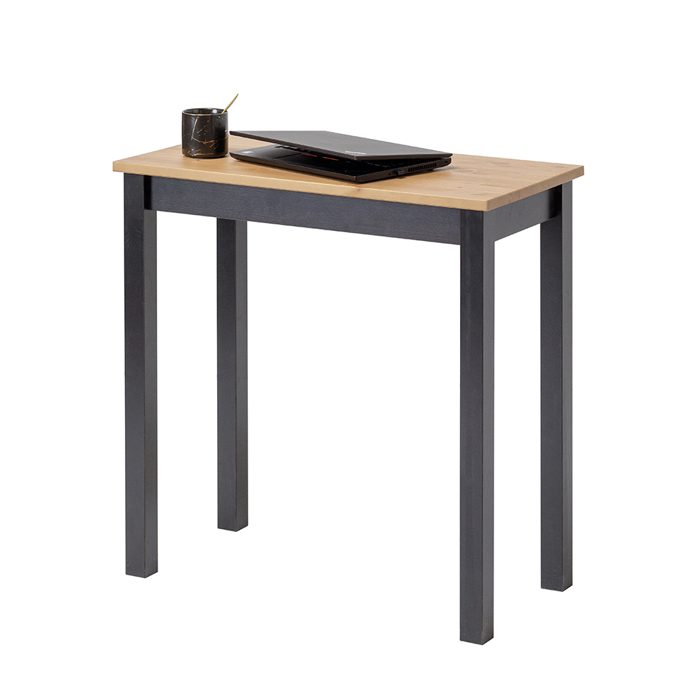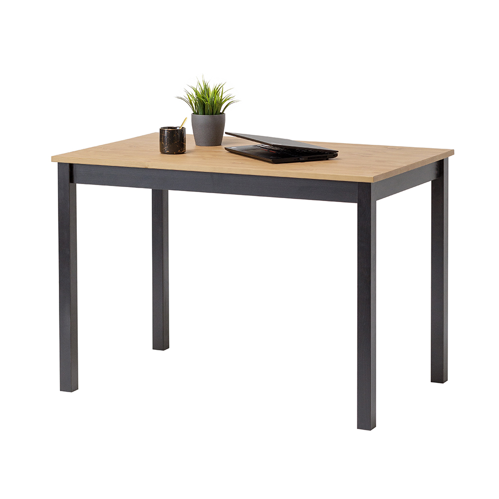 Scrivania in legno massello con piano nel colore naturale e finiture in nero, perfetta per l’ufficio ma anche per casa, dalle linee pulite e moderne ispirate allo stile scandinavo.