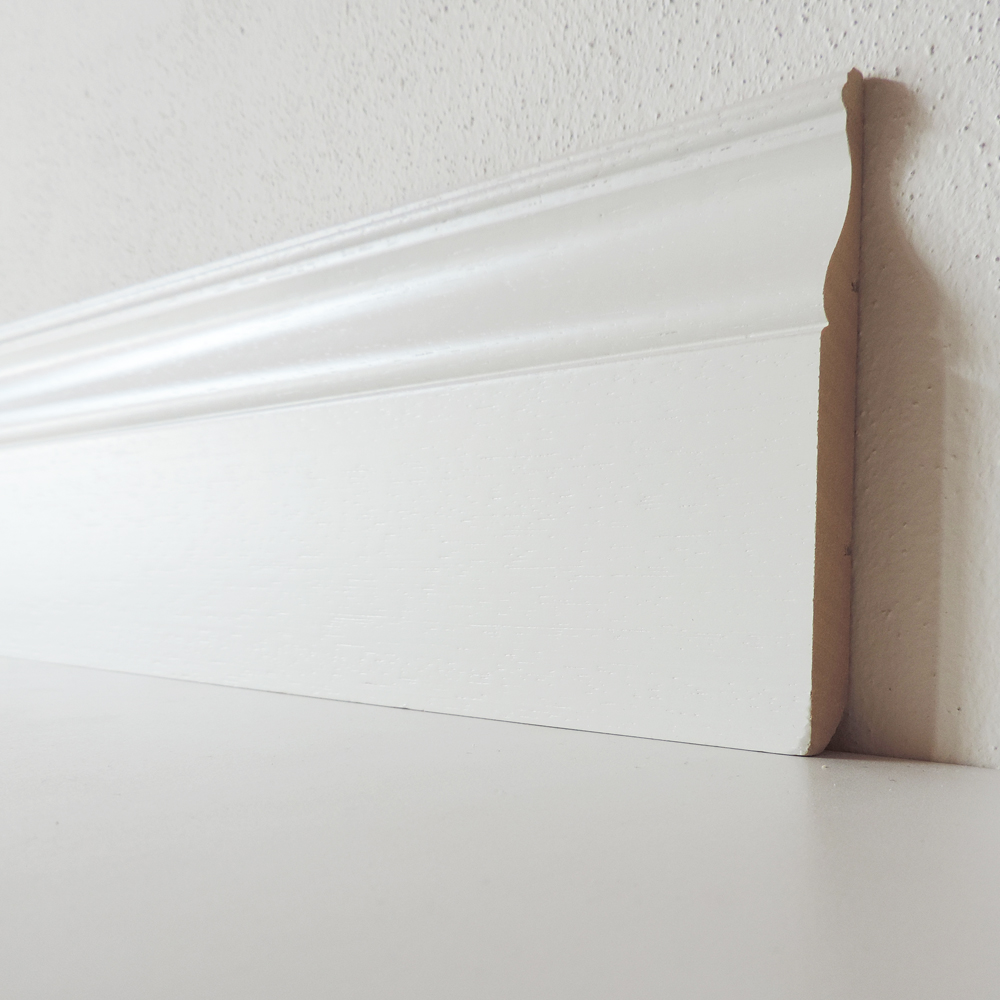 Il Battiscopa Legno Bianco ha decoro nella parte superiore stile Ducale Inglese.