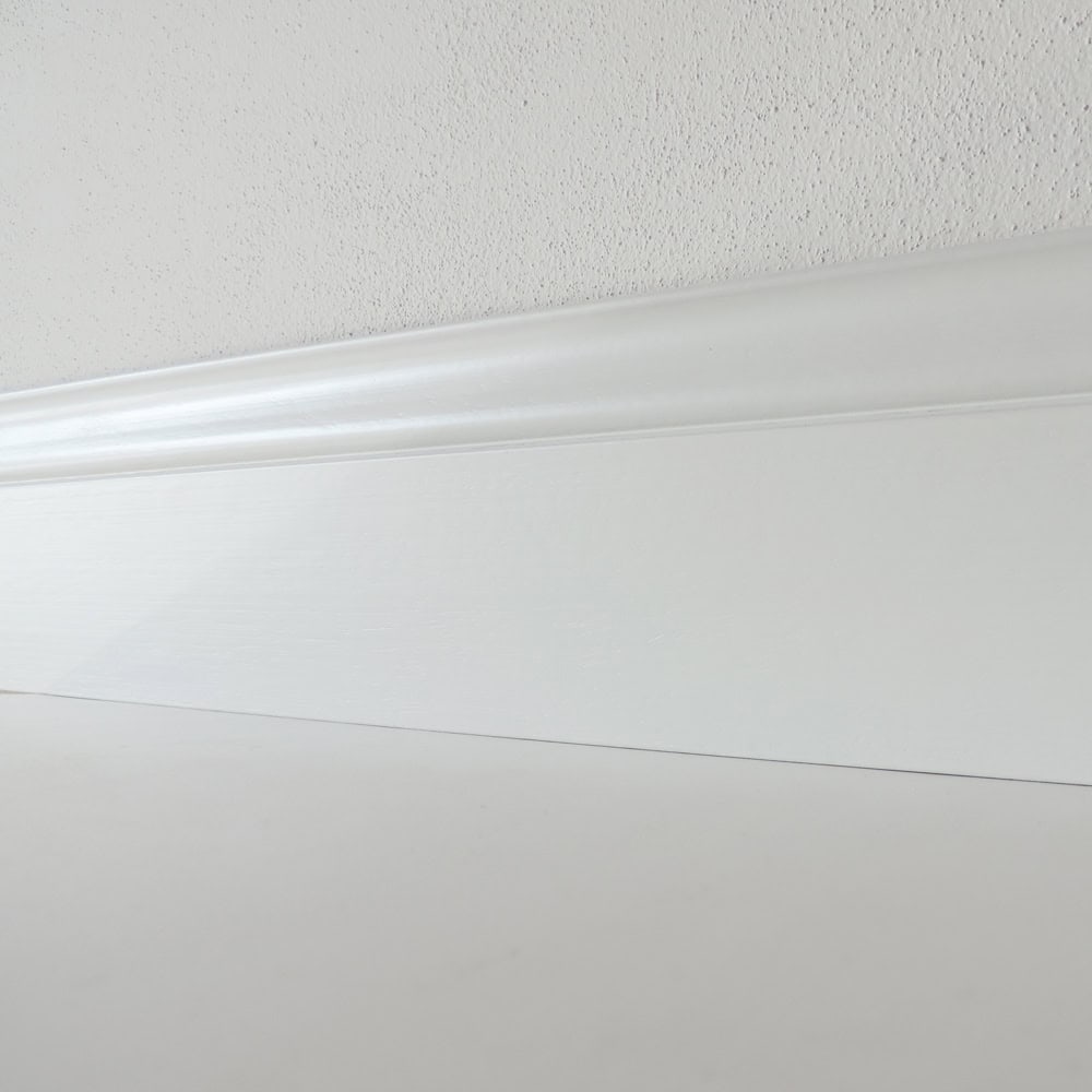 La superficie del Battiscopa Legno Bianco è laccata opaca (NON lucida).