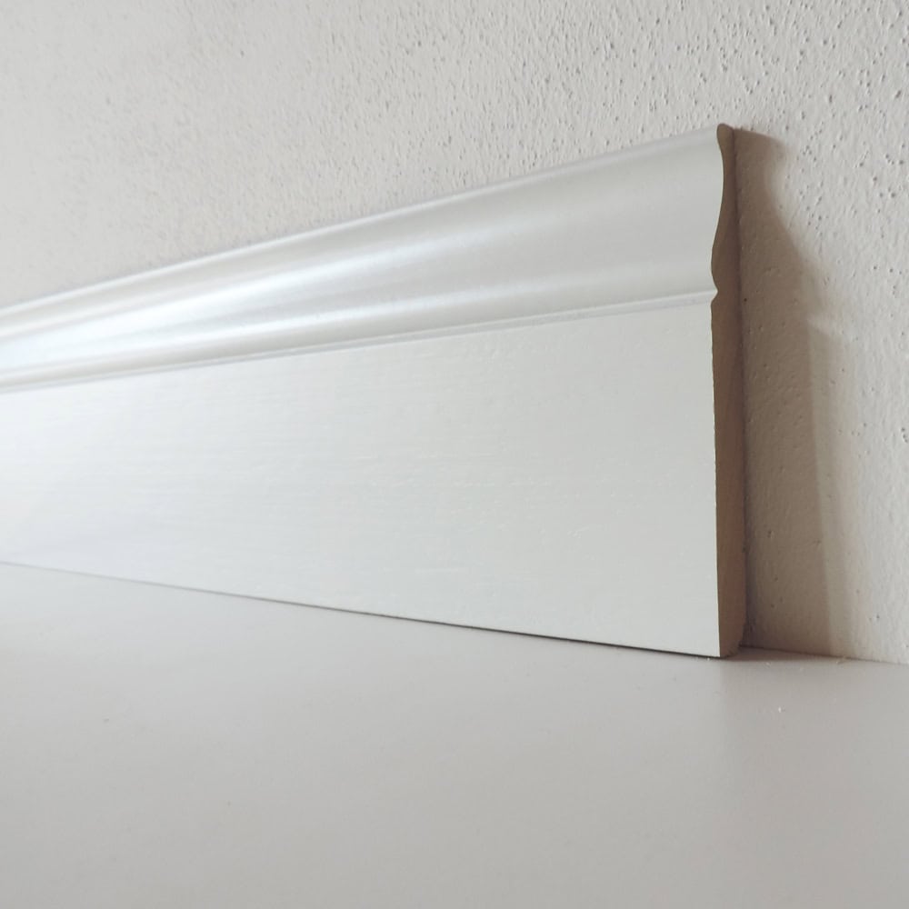 Il Battiscopa Legno Bianco ha decoro nella parte superiore stile Ducale Inglese.