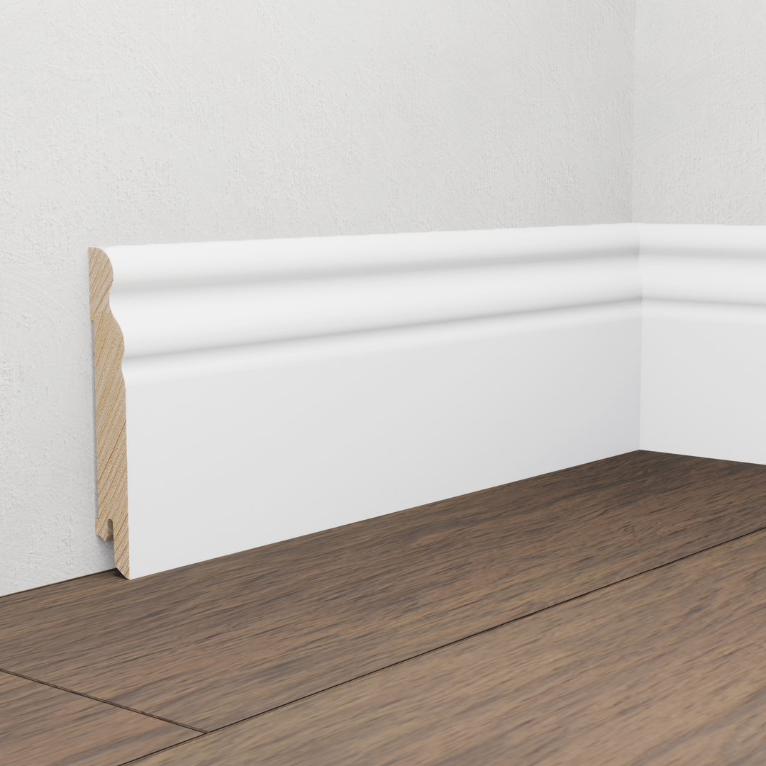 Battiscopa Legno Bianco RAL 9016 realizzato in legno di Abete Rosso di Prima Qualità impiallacciato adatto ad ogni pavimento e ad ogni tipo di ambiente.