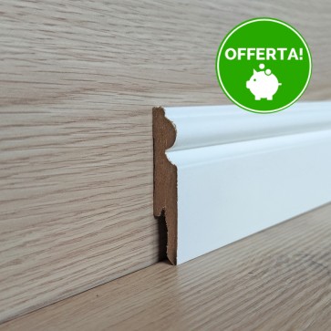 Battiscopa MDF Bianco rivestito in carta melaminica, soluzione economica consigliata per abbinare facilmente il battiscopa al tuo pavimento.