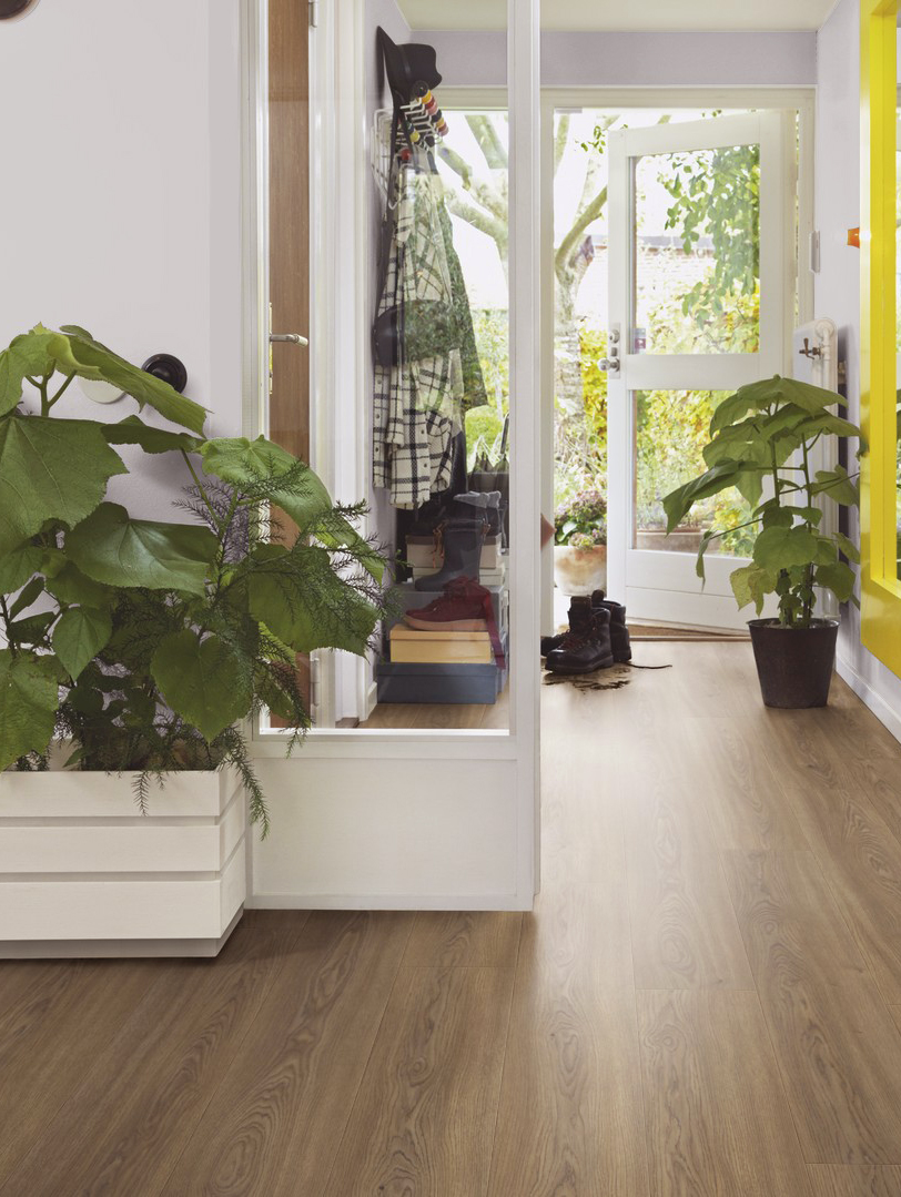 Il Laminato PERGO della Collezione Drammen color Rovere Ricard riproduce delicatamente i colori del legno, pur mantenerndo una base rustica.