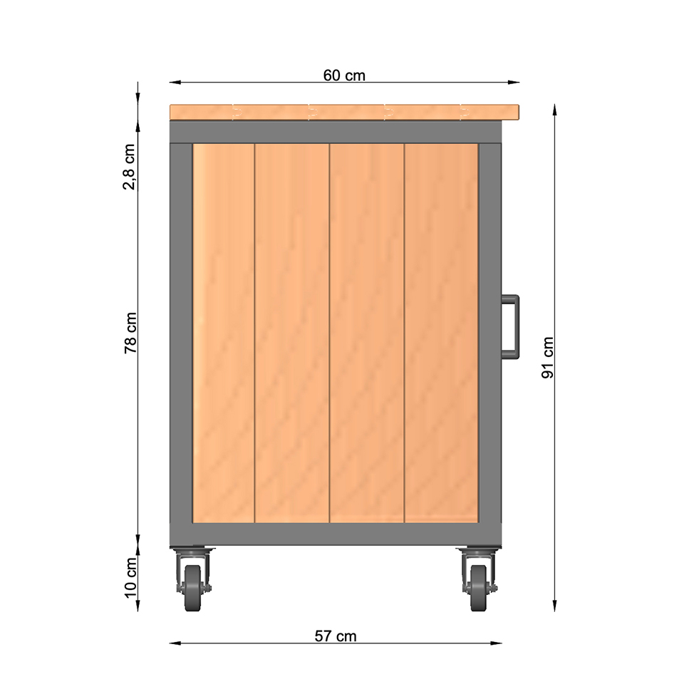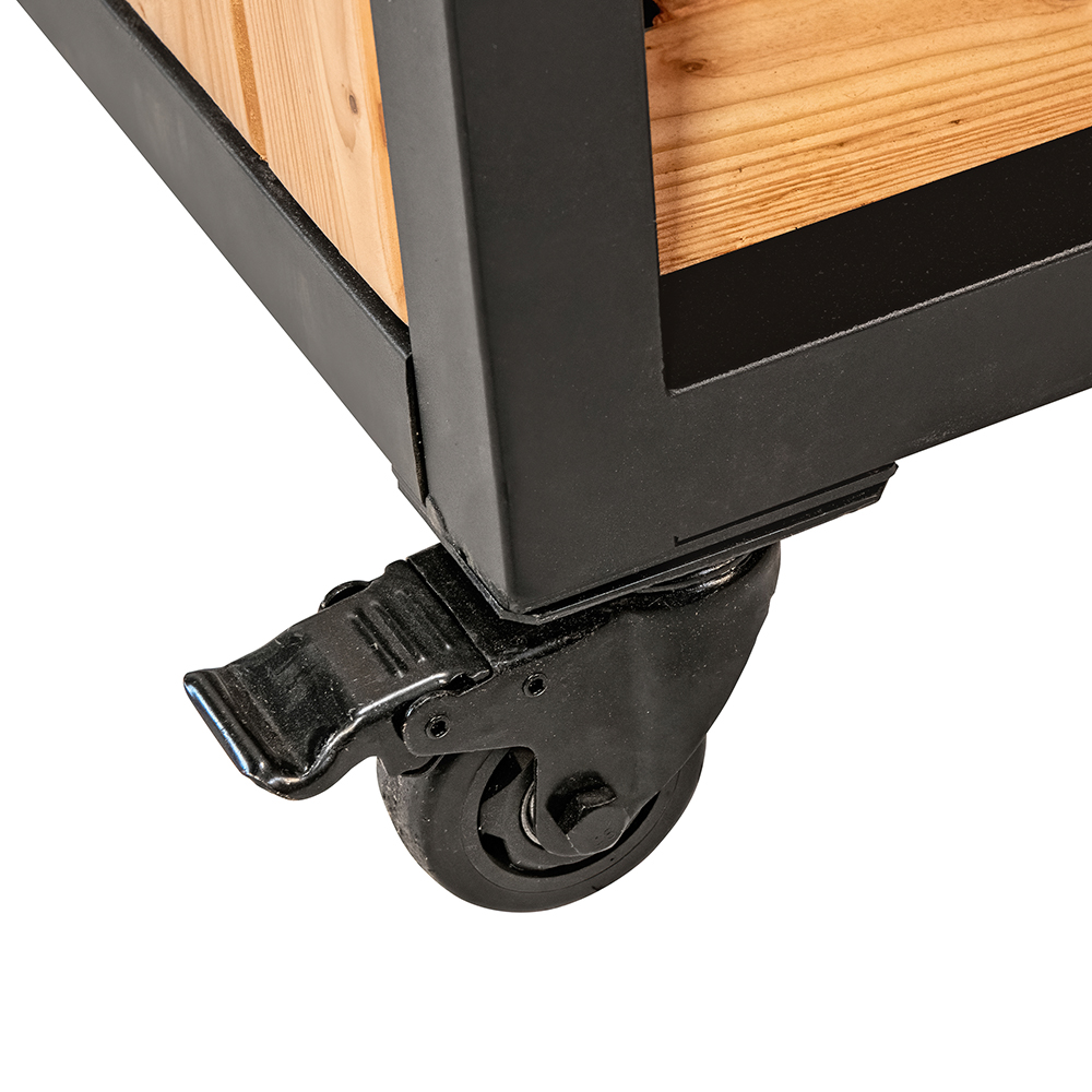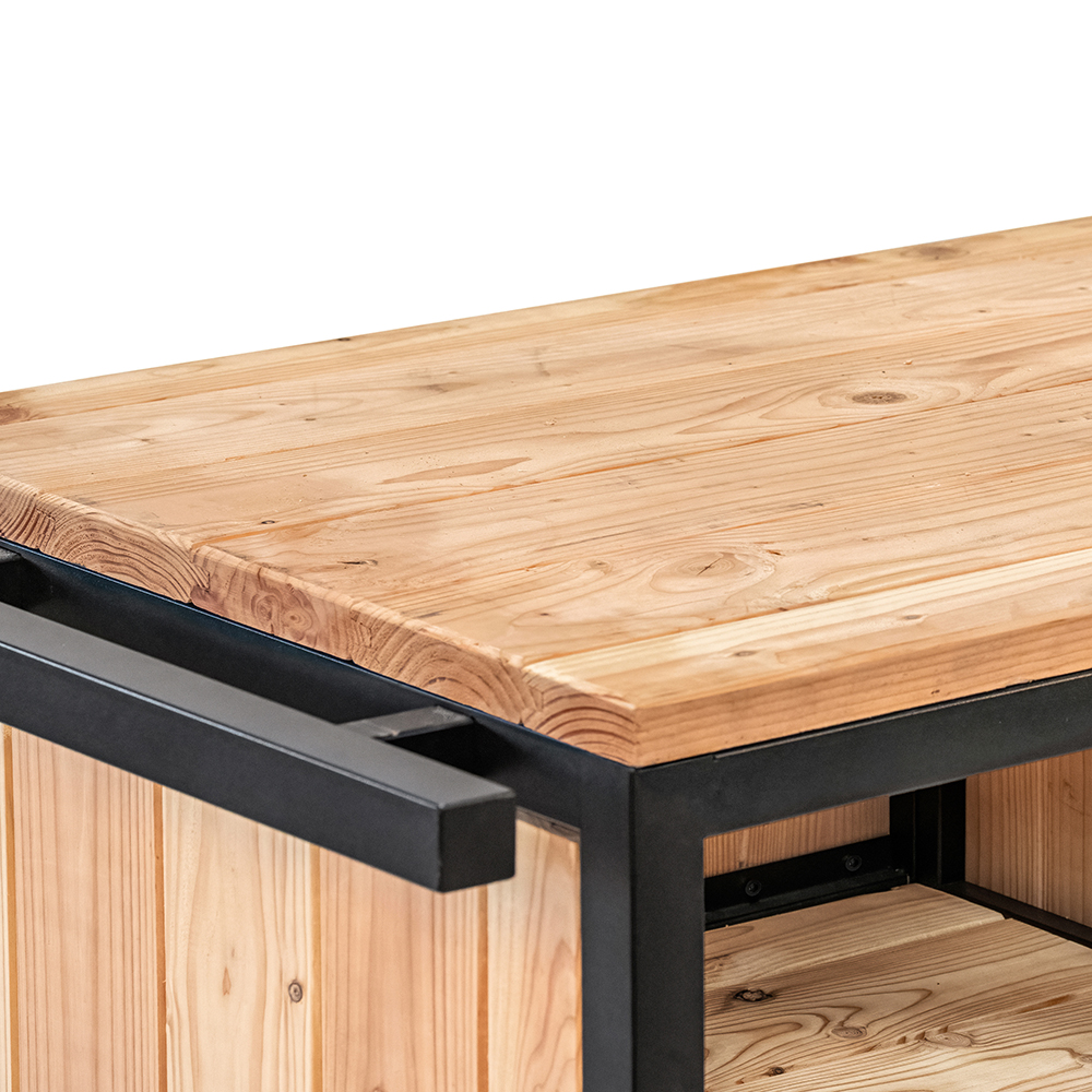 Mobiletto Cucina da esterno realizzato in Legno di Douglas con profili rinforzati in lamiera per rendere la struttura ancora più solida e resistente.