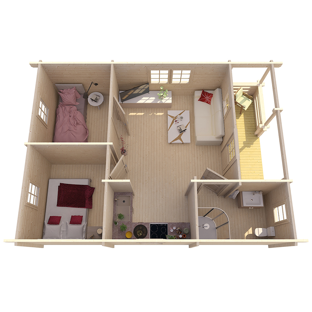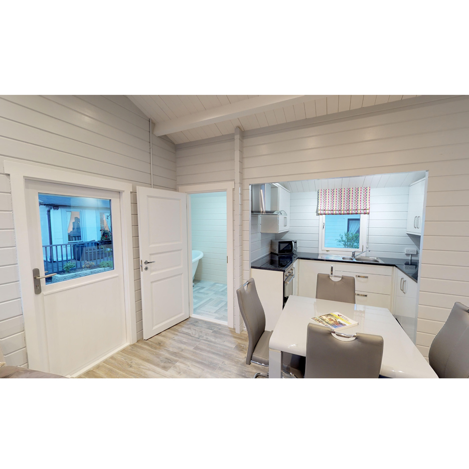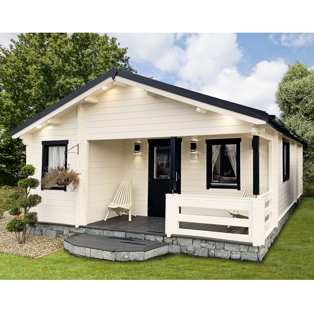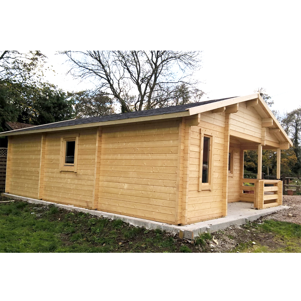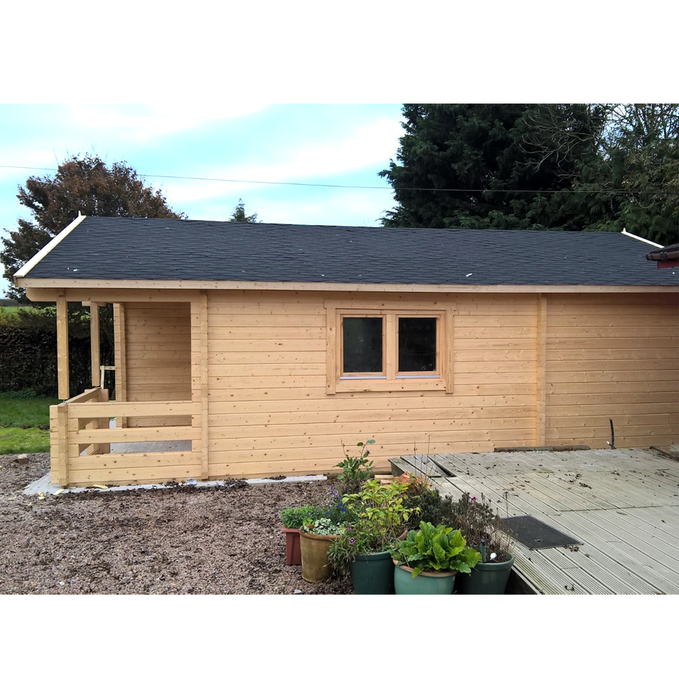 Casetta in legno Abitabile modello Kay realizzata in perline a doppio incastro da ben 70 mm., il massimo dell’isolamento termico ed acustico e della robustezza!