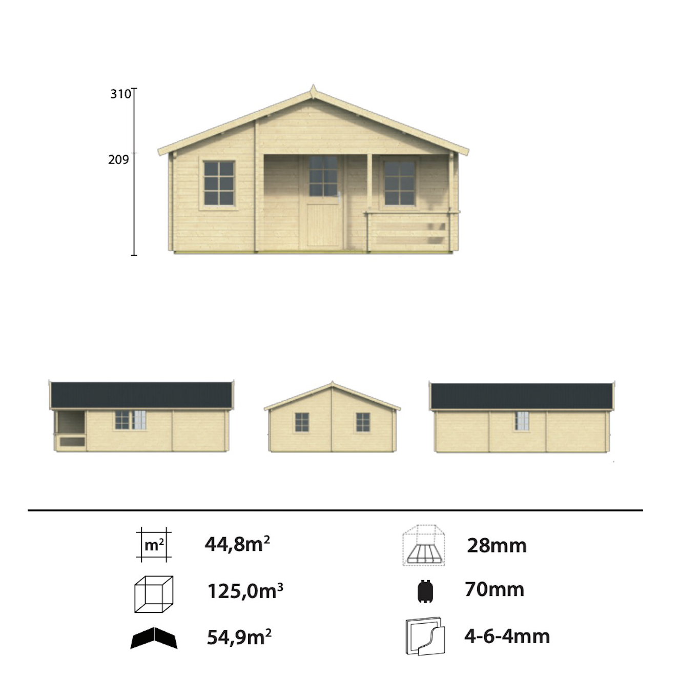 - Set porte e finestre in legno complete di vetro Non Compreso – disponibile nella sezione “Accessori”