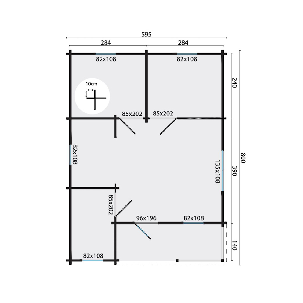 - Dimensioni esterne – tetto escluso: 800 x 595 x 209 cm