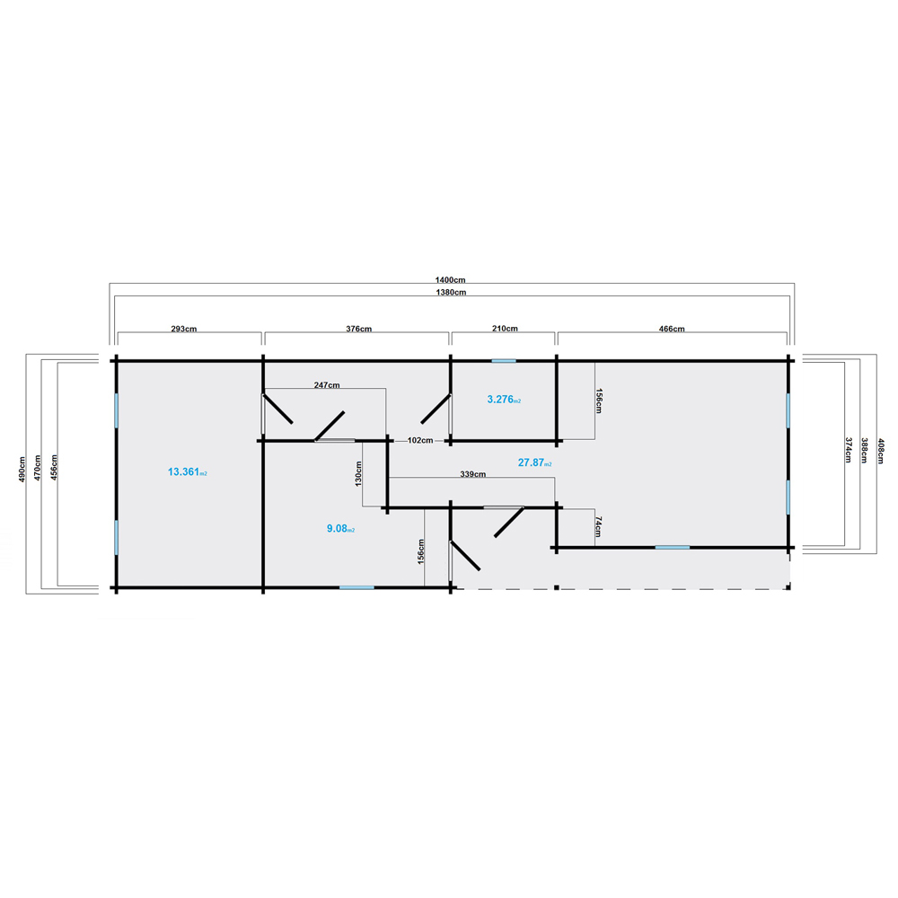 - Dimensioni esterne – tetto escluso: 1400 x 490 x 236 cm