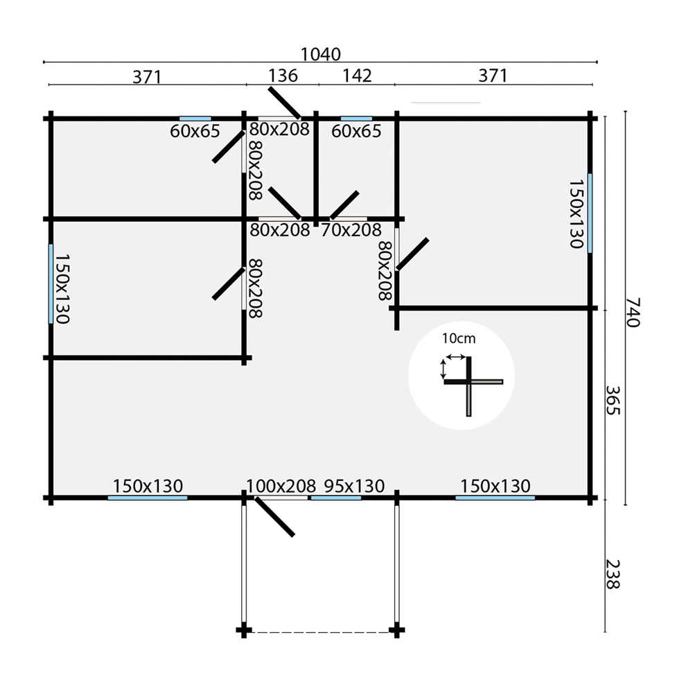 Onlywood Casetta in legno abitabile 70 Mq FINN – 1040 x 740 cm