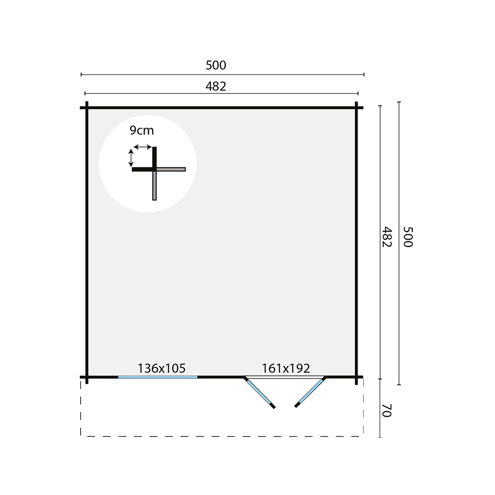 - Dimensioni esterne casetta – tetto escluso: 500 x 500 x 200 cm