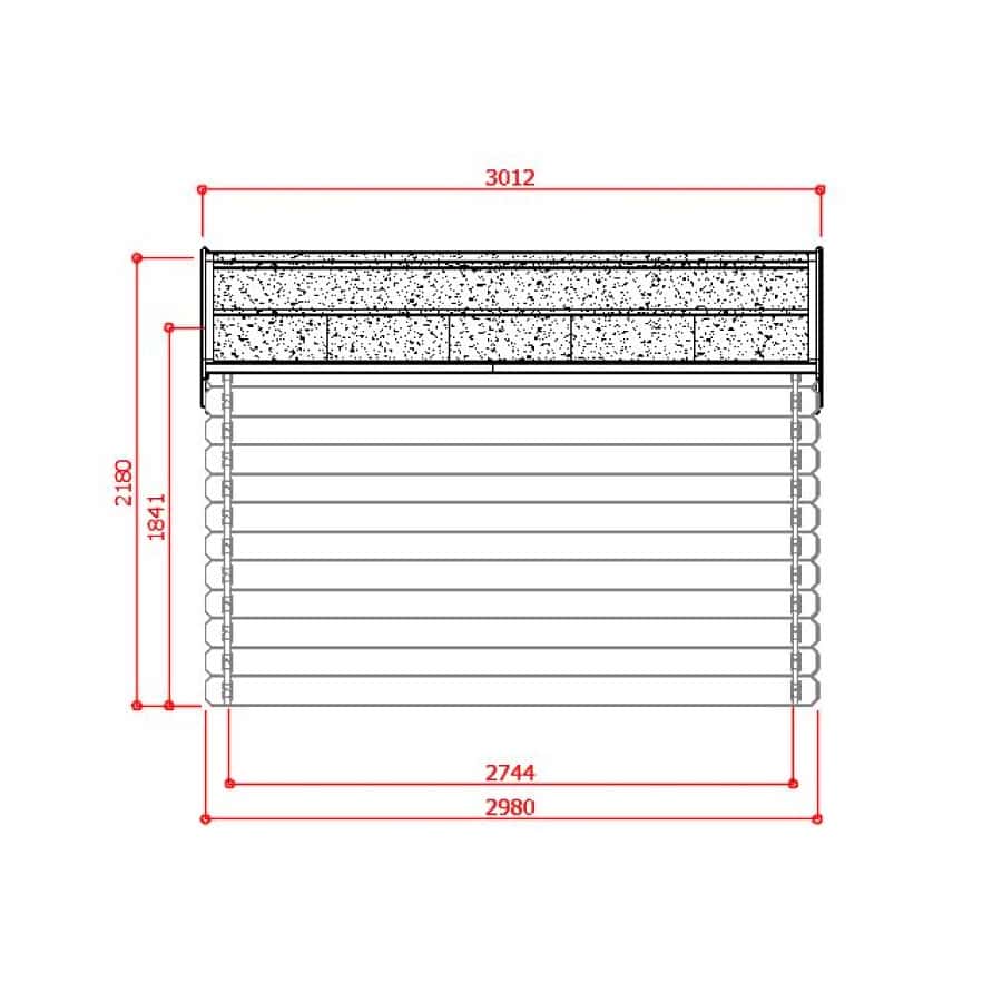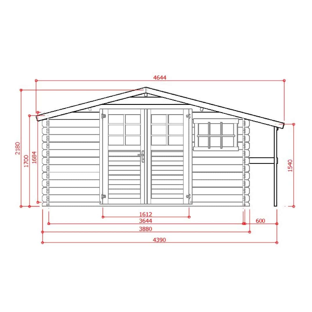 - Dimensioni esterne – tetto escluso: 439 x 298 x 170 h cm