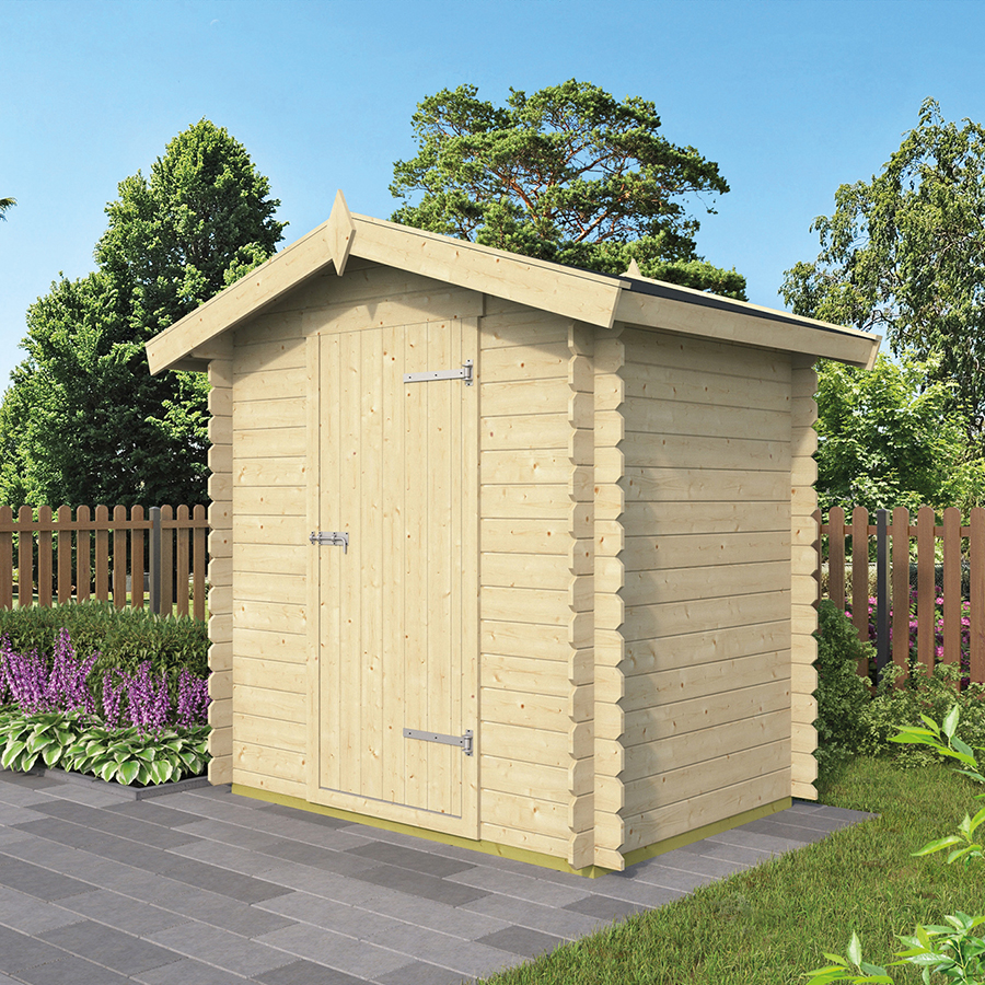 Casetta in Legno da giardino modello Irina, composta da un’unica stanza, raggiungibile tramite porta ad anta singola.