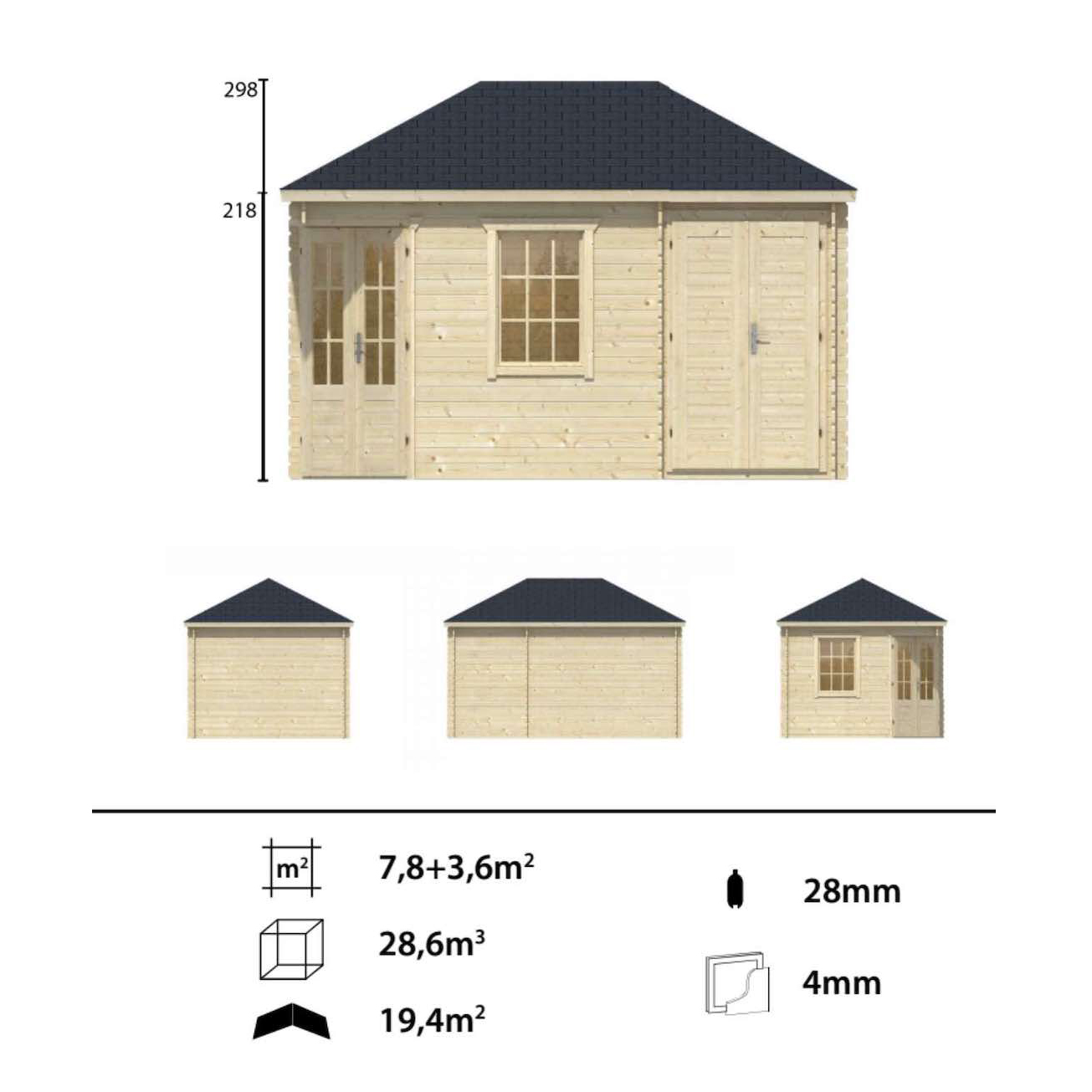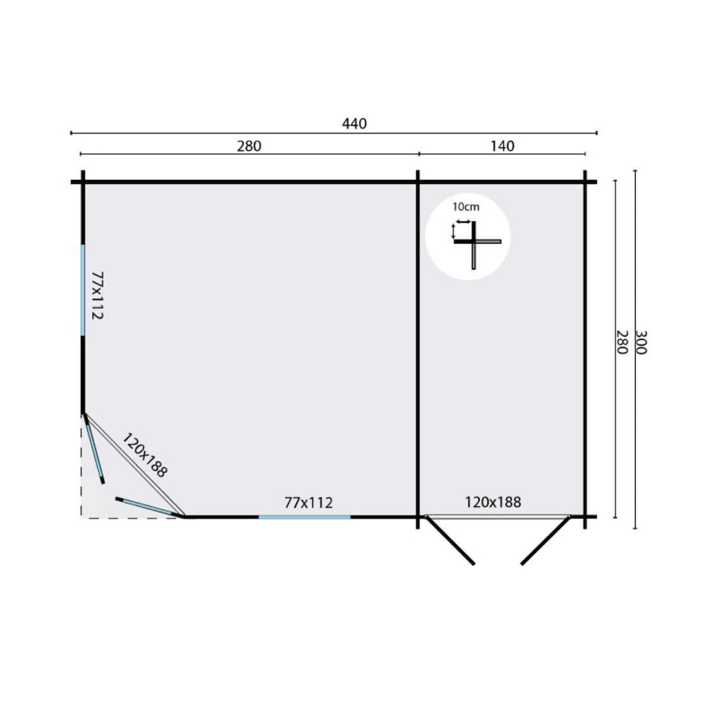 - Dimensioni esterne – tetto escluso: 440 x 300 x 218 h cm