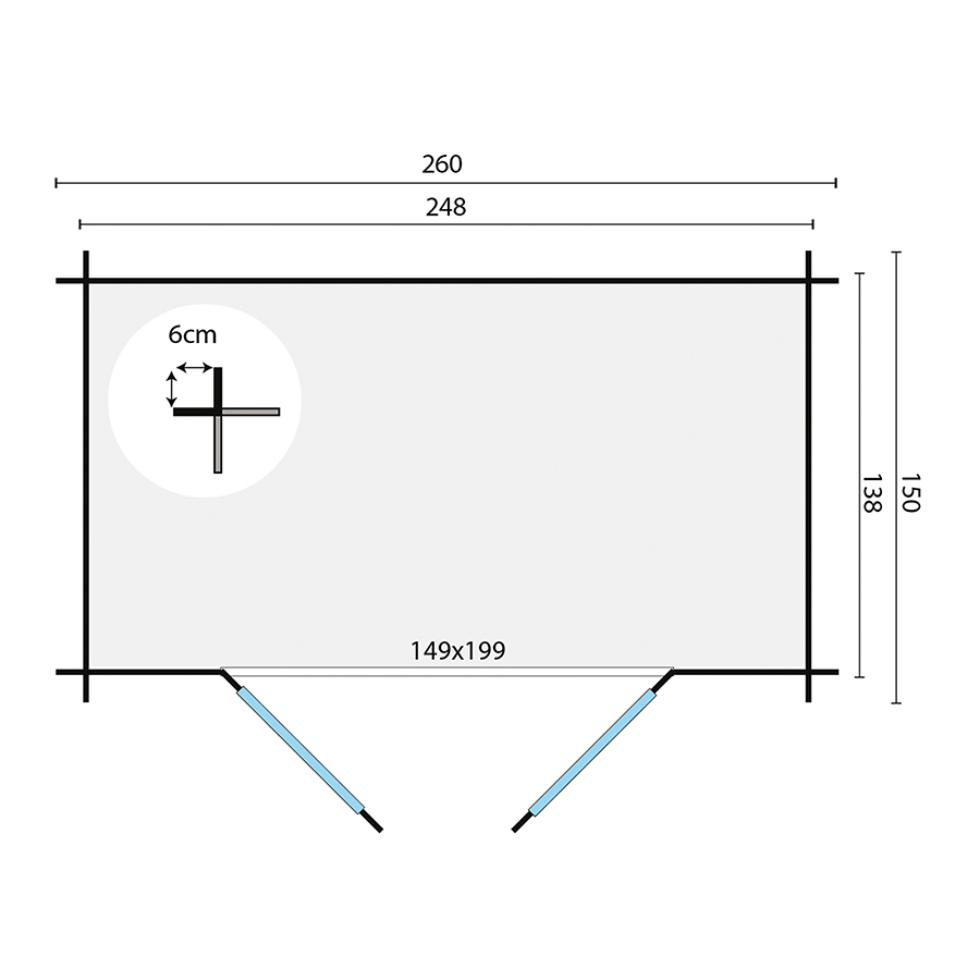 - Dimensioni interne: 248 x 138 x 205 h cm