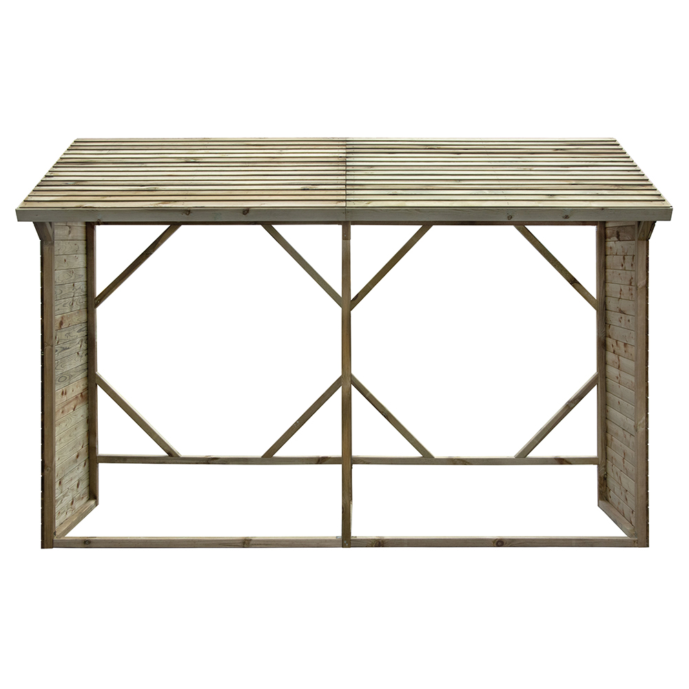 Legnaia da Esterno Doppia in Legno di Pino Impregnato in Autoclave, pronta per l’uso esterno senza bisogno di manutenzione nel tempo.