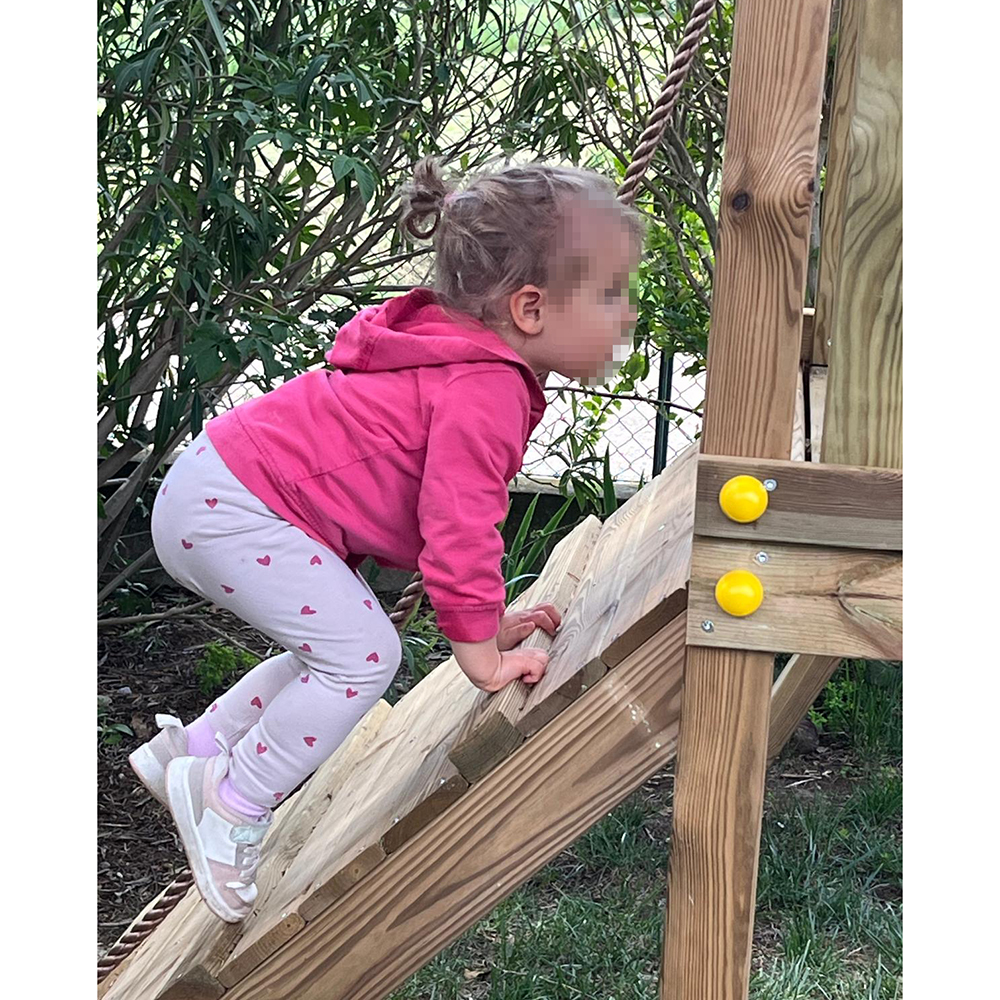Il Parco Giochi da Giardino è realizzato con Legno di Pino Trattato in Autoclave per l’Esterno, pronto per l’Uso Esterno.