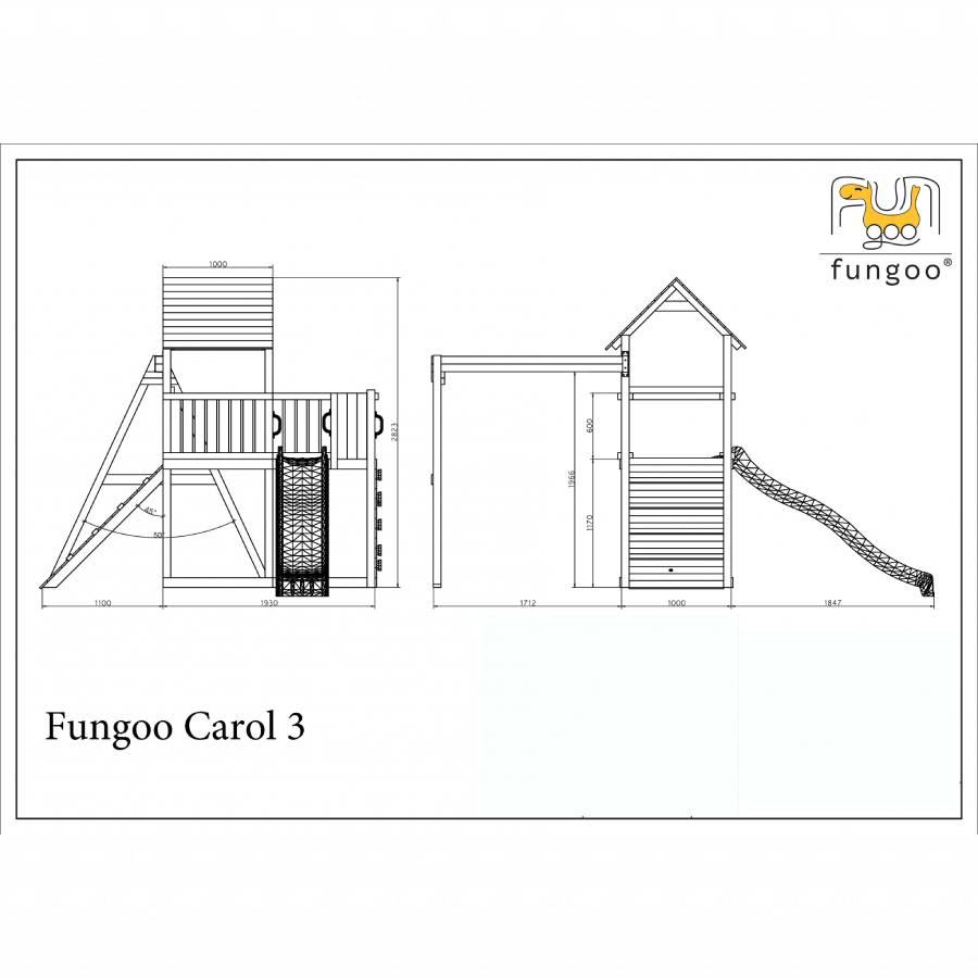 Parco giochi in Legno da Giardino Fungoo Carol 3 con torre d’avvistamento, altalena e scivolo per il divertimento illimitato dei tuoi bambini