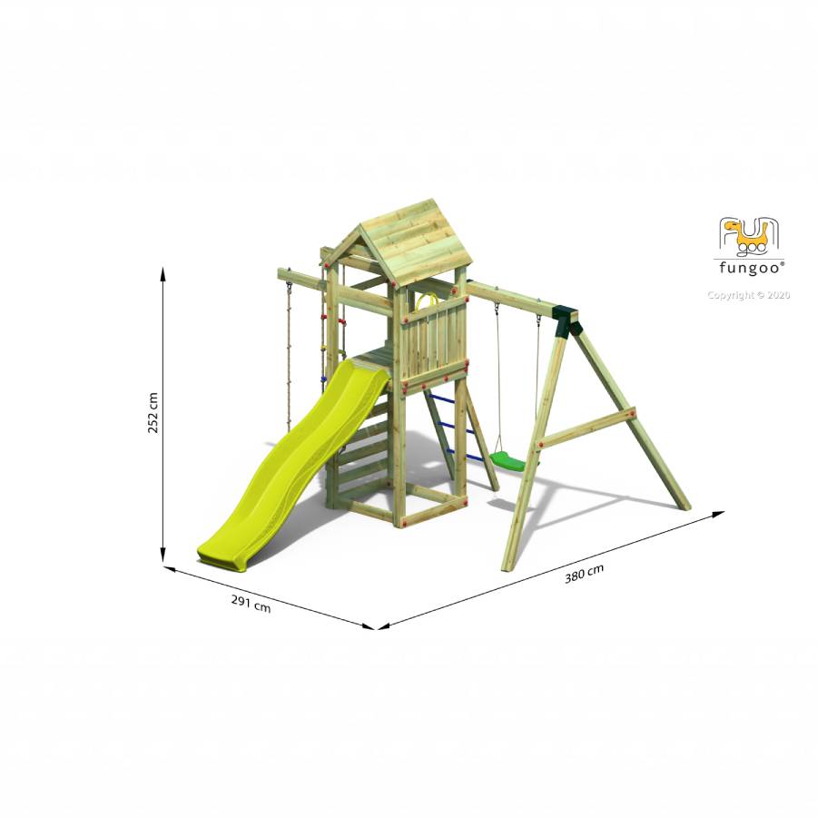 Parco Giochi in Legno da Giardino Fungoo GAIA Torre con Scivolo e Altalena.
