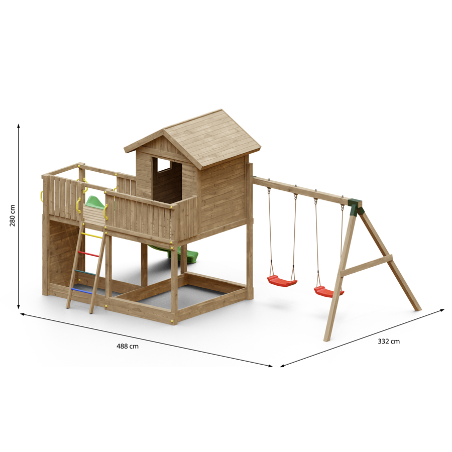 Vuoi Personalizzare il tuo Parco Giochi in Legno con l’aggiunta di altri Componenti? Scopri nella Sezione “Accessori” quelli compatibili con questo Modello!
