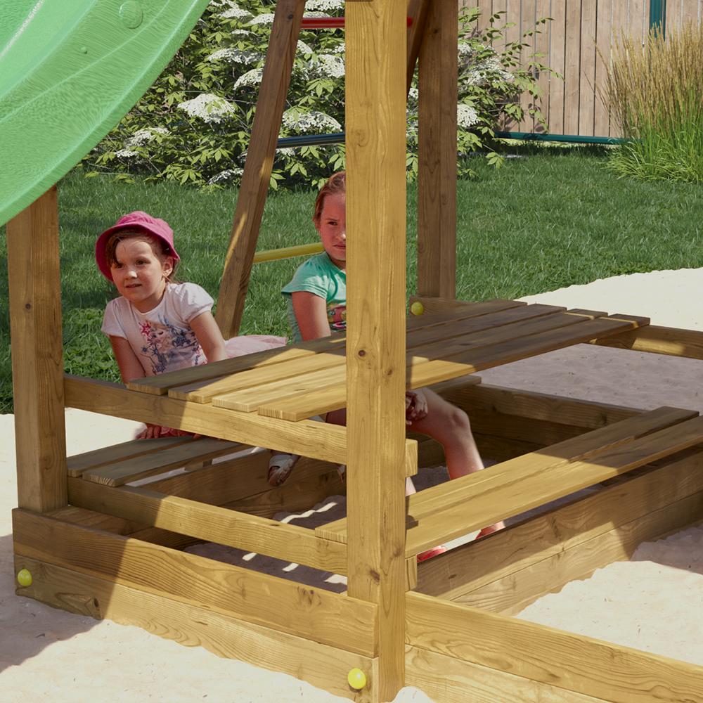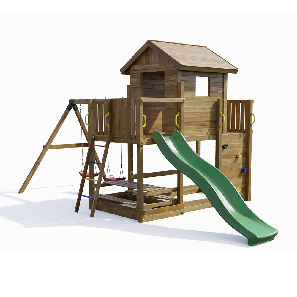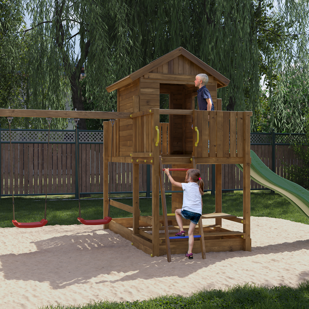 Parco Giochi in Legno da Giardino Mars casetta, altalene e scivolo per il divertimento illimitato dei tuoi bambini.