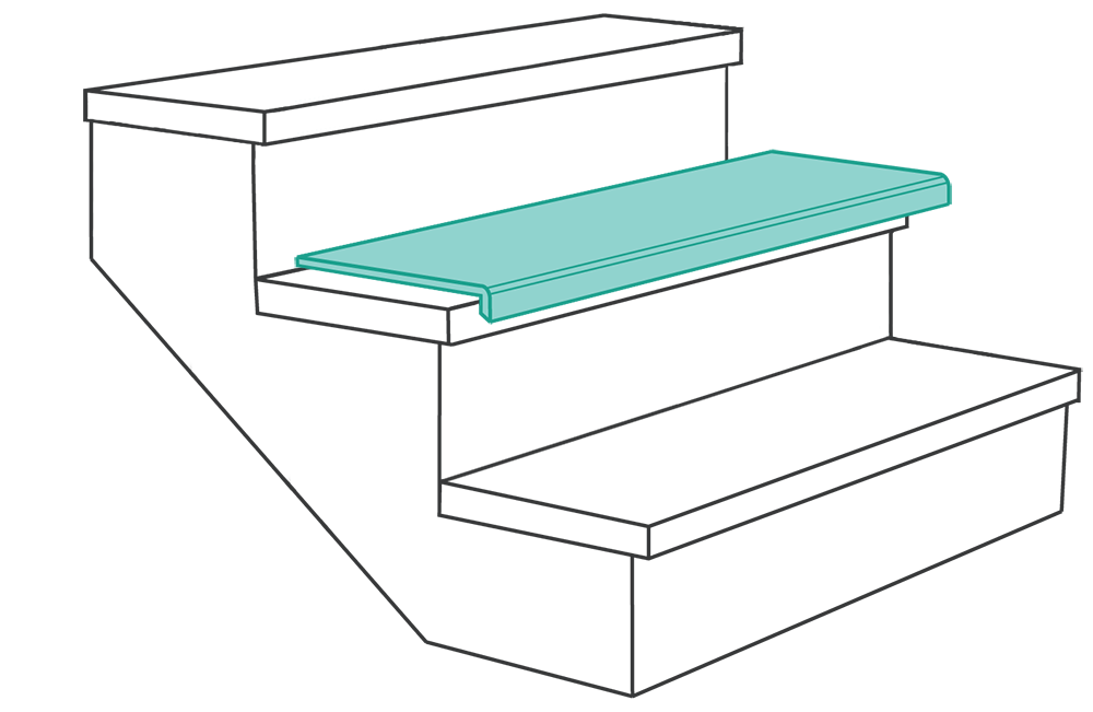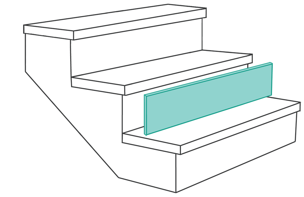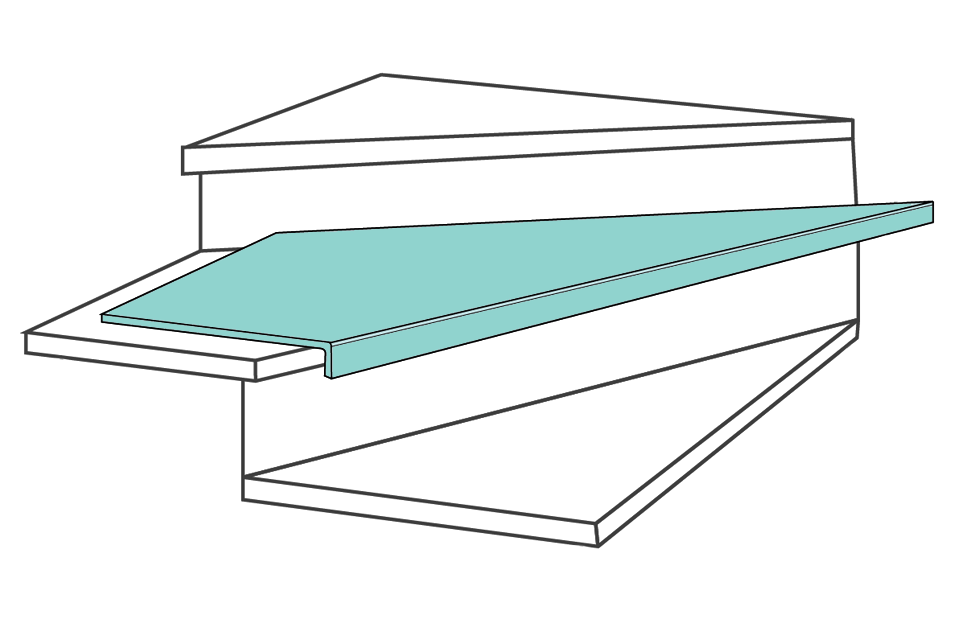 Il pianerottolo può essere collegato direttamente al gradino, grazie all’incastro maschio-femmina. Questo permette di rivestire anche scale a piè d’oca.