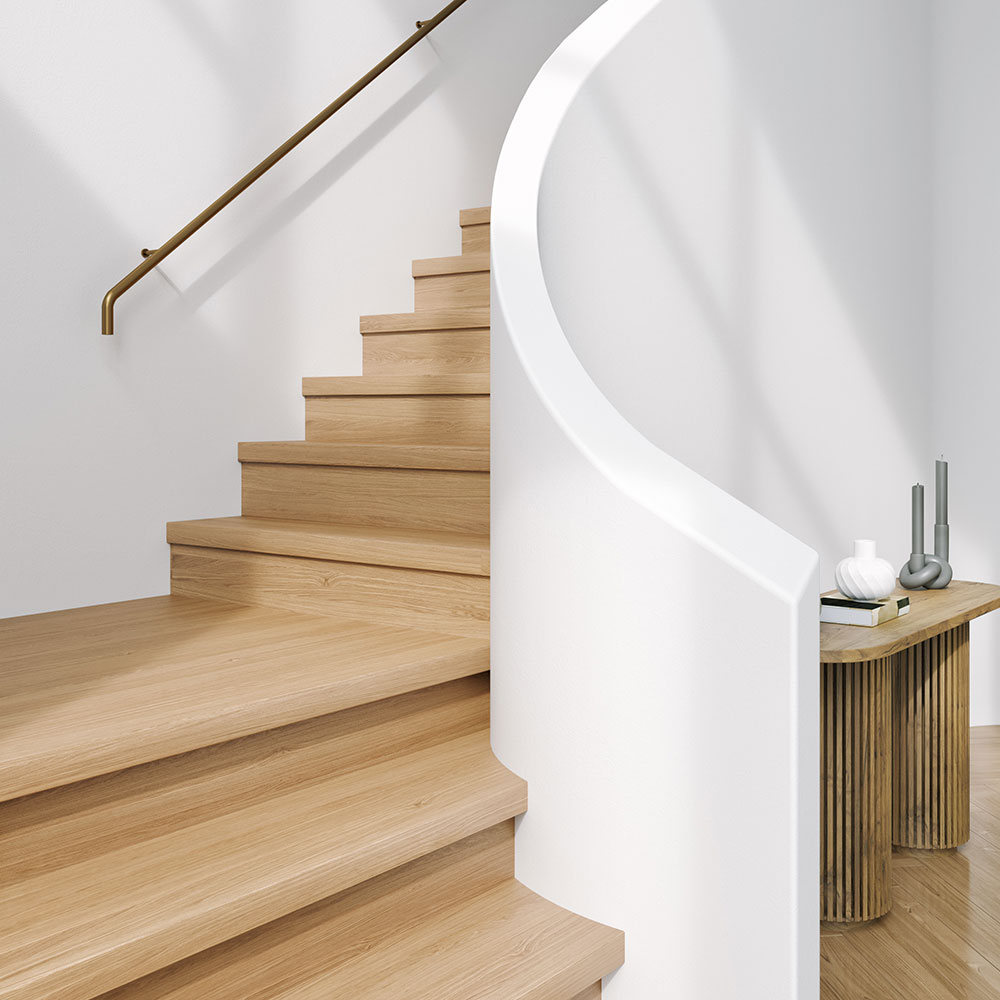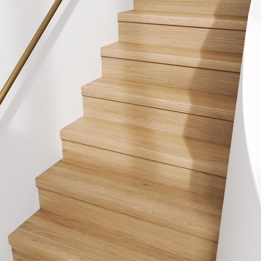 Rivestimento per Scale interne Texas in Laminato AC4 spessore 8 mm. Rivesti la tua scala interna con Gradini, Pianerottoli, Alzate, Bordi di finitura e Profili di partenza.