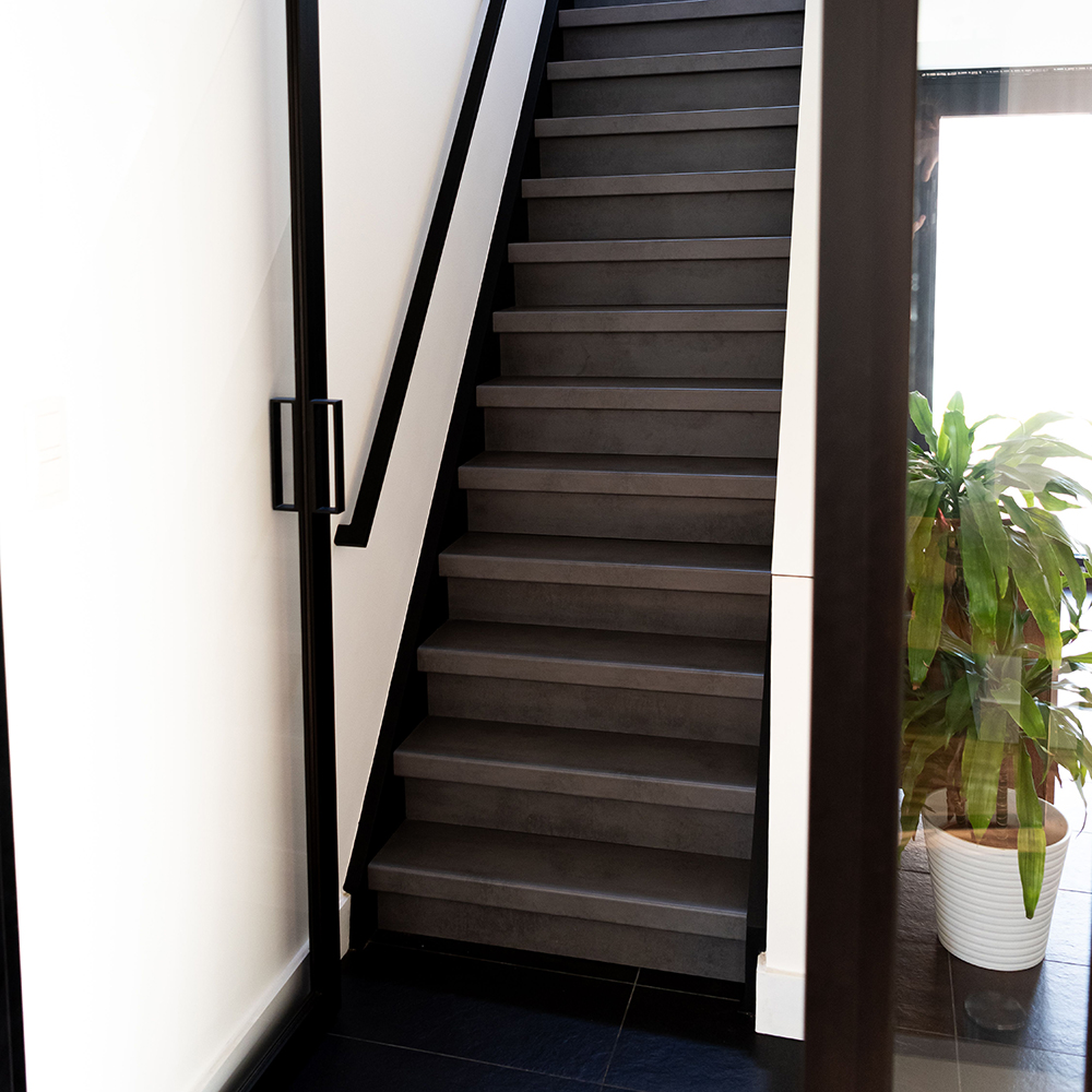 Rivestimento per Scale interne Gradino Dark Grey Stone in Laminato AC4 spessore 8 mm.