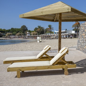Lettino prendisole singolo in legno trattato per l'esterno perfetto per piscine, stabilimenti balneari, ma anche per un relax di vero lusso nel tuo giardino.