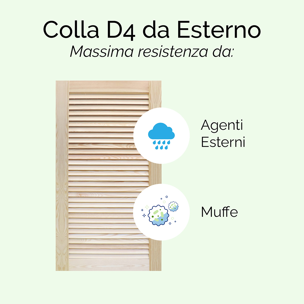 - Colla D4 resistente ad agenti atmosferici e muffe