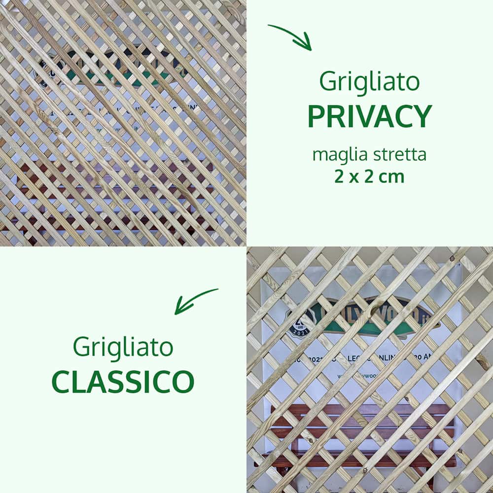 Grigliato in Legno a maglia stretta modello PRIVACY, elegante divisorio per il Giardino o Terrazzo. Grazie alla maglia stretta di soli 2 cm è perfetto per creare Zone di Privacy.