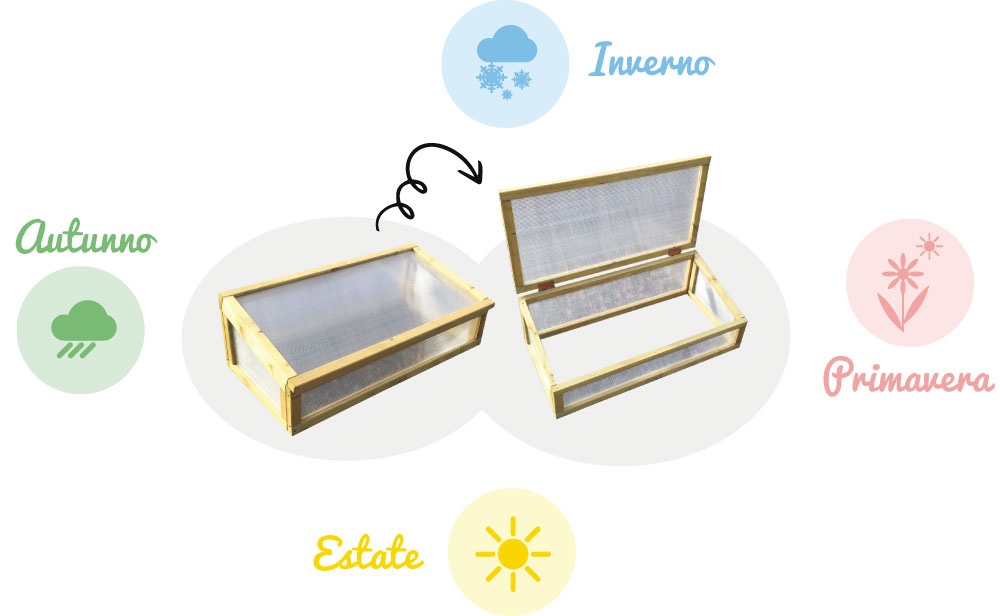 L'Orto Rialzato è ideale per alternare più coltivazioni in uno spazio ristretto. La suddivisione in vani garantisce ordine e separazione tra le varie semenze.