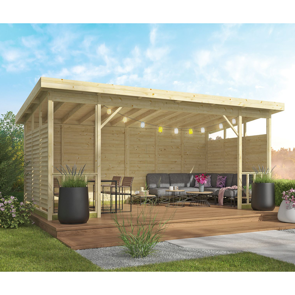 Pergola in legno con pareti frangivista e tetto in legno Modello Kristina.
