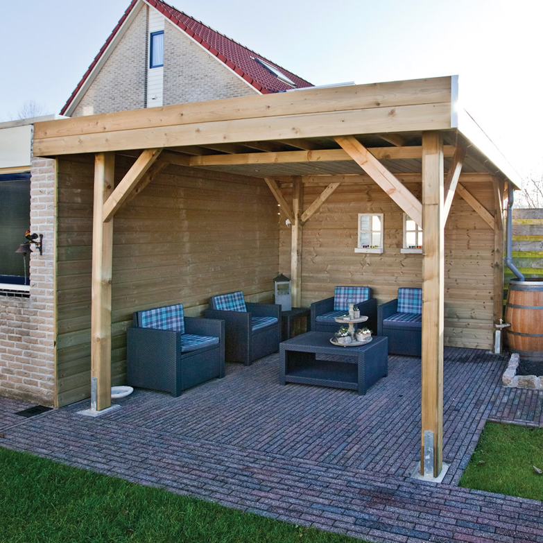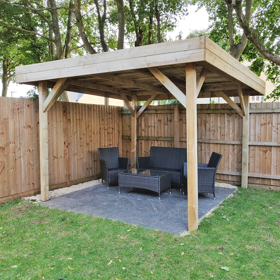 Gazebo in Legno impregnato in autoclave con tetto piatto dal Design Moderno e Raffinato.