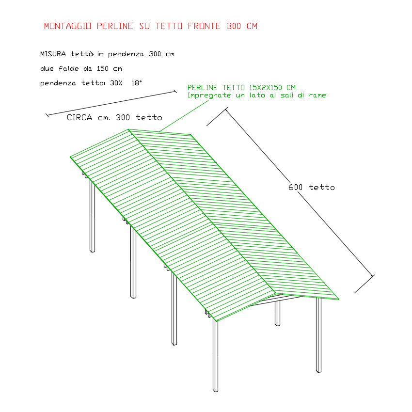 Tetto in Legno Impregnato ai Sali di Rame con Portata 90 Kg/Mq