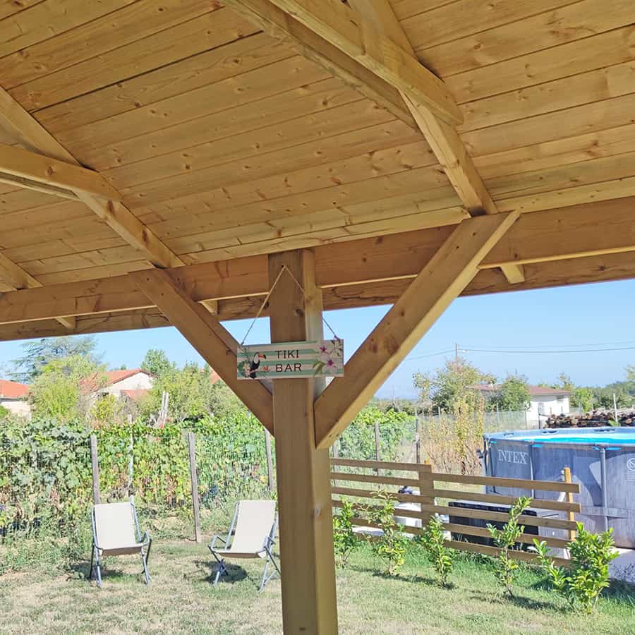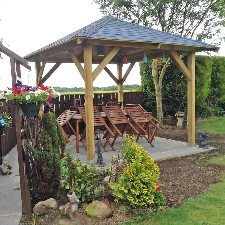 Gazebo in Legno di Pino impregnato in autoclave, già protetto per l’esterno, con Tetto in legno.