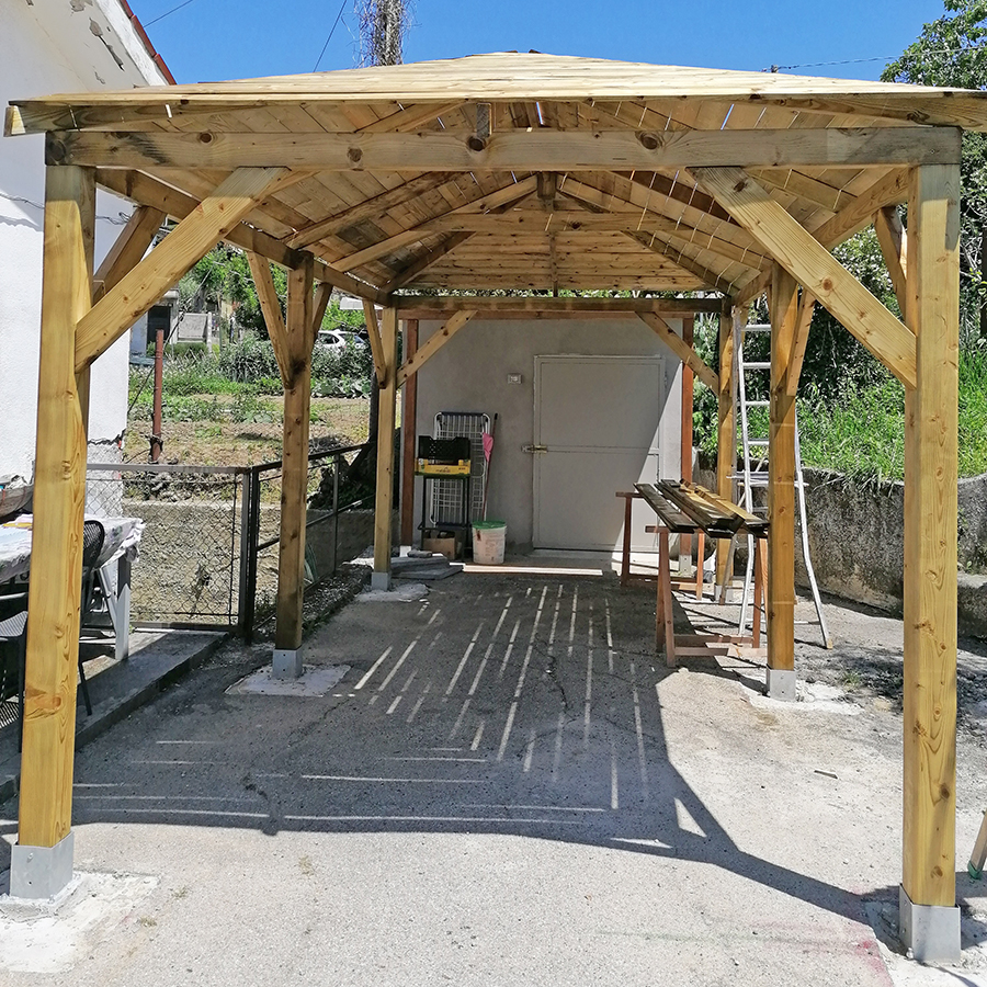 I Pali Montanti hanno sezione 12 x 12 cm, questo rende il Gazebo in Legno molto Resistente e Stabile, adatto anche a zone molto ventose.