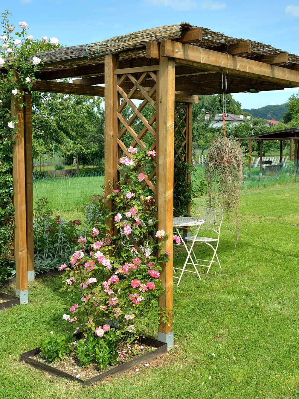 Ti ricordiamo che la Pergola BASIC è adatta solo a coperture leggere come teli in tessuto o pvc, rampicanti e canniccio.