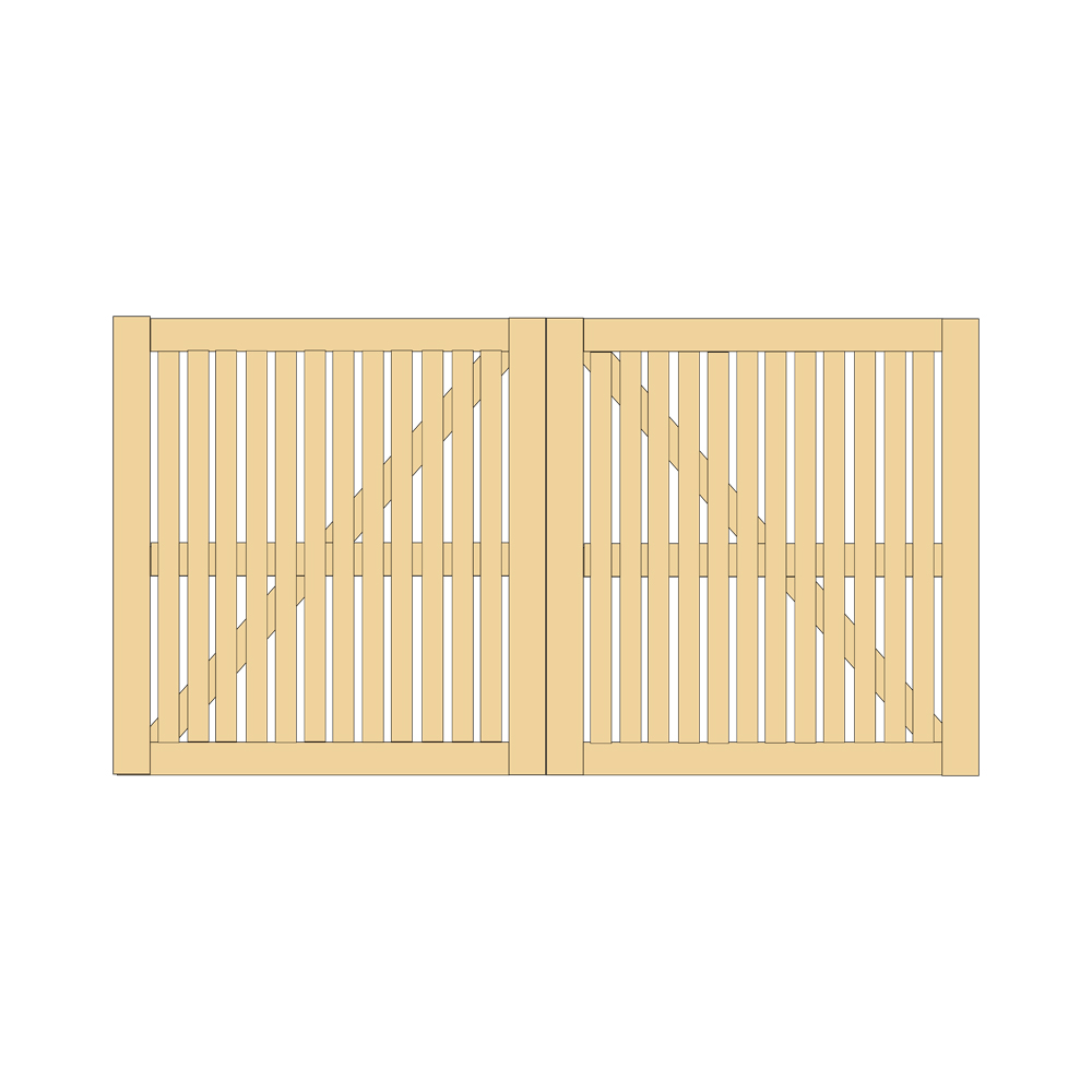 Il Cancello in Legno è in pino naturale. Consigliamo di trattare il legno con un buon impregnante da esterno trasparente o del colore che si desidera.