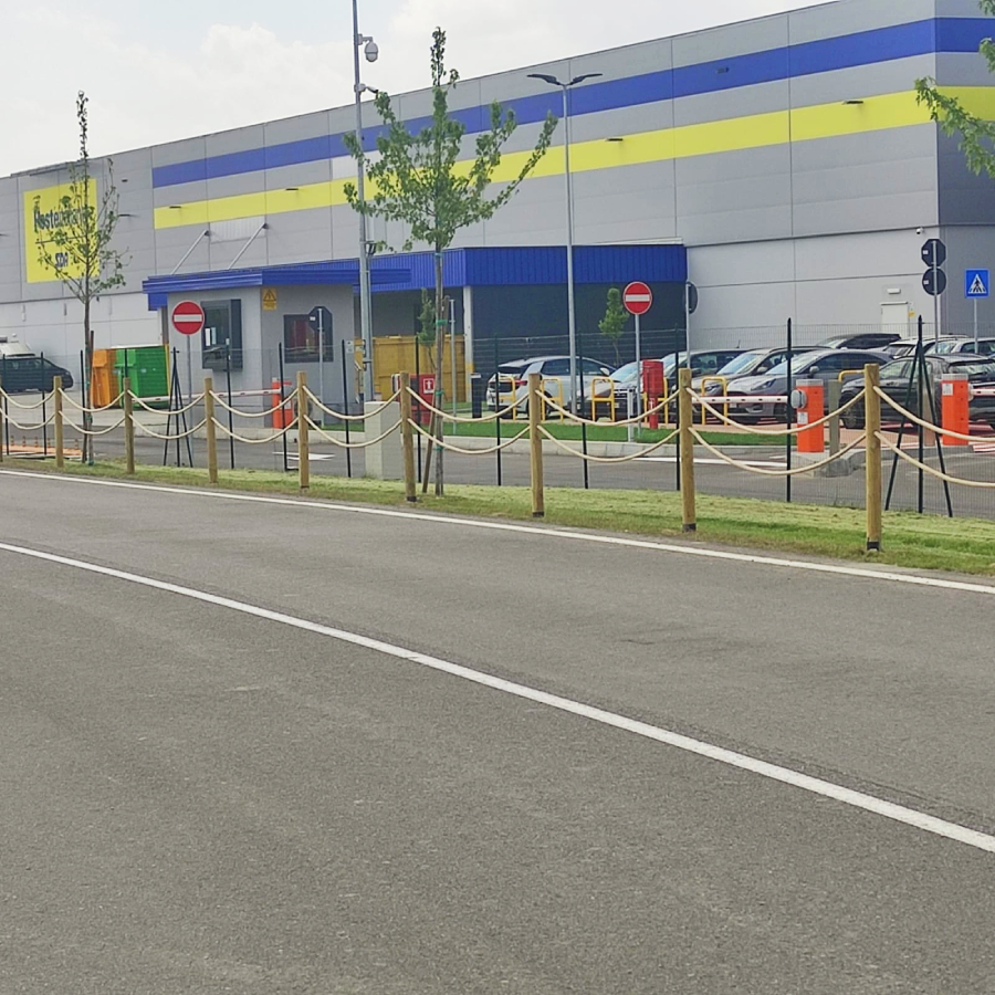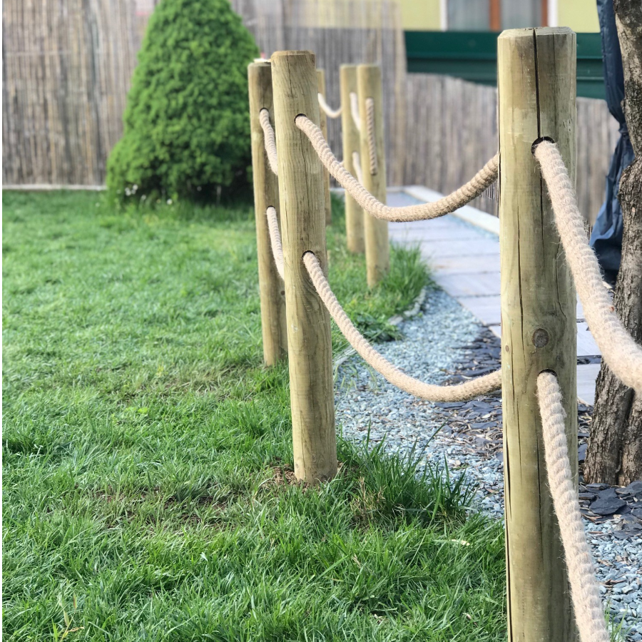 Staccionata con corda interamente realizzata in Pino Massello Trattato in Autoclave classe 4. La corda è in Canapa Naturale.