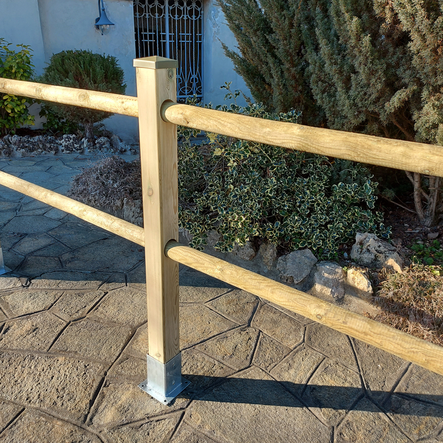Tutti i pali utilizzati per la staccionata in legno sono elementi torniti, con teste raccordate a corona, esenti da cromo e arsenico.